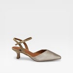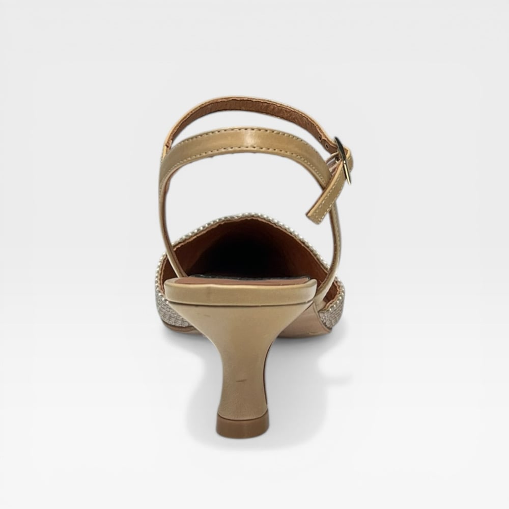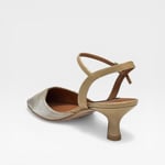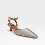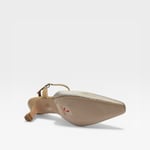 Raffia upper. Leather lined. Adjustable ankle strap. Soft padded insole. 2” heel. Synthetic outsole. $290
