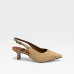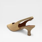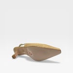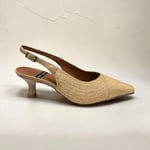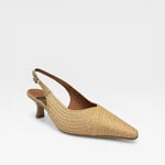 Raffia upper. Leather lined. Soft padded insole. 2” heel. Synthetic outsole. $290