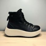 Waterproof leather upper. Microfibre lined. Rubber unit sole. Inside zipper. Adjustable laces.