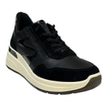 Leather upper. Leather/ Textile lined. Rubber outsole. High soft technology. Step in slip on shoe, no shoe horn needed just push your foot into it and the heel counter serves as a built shoe horn.