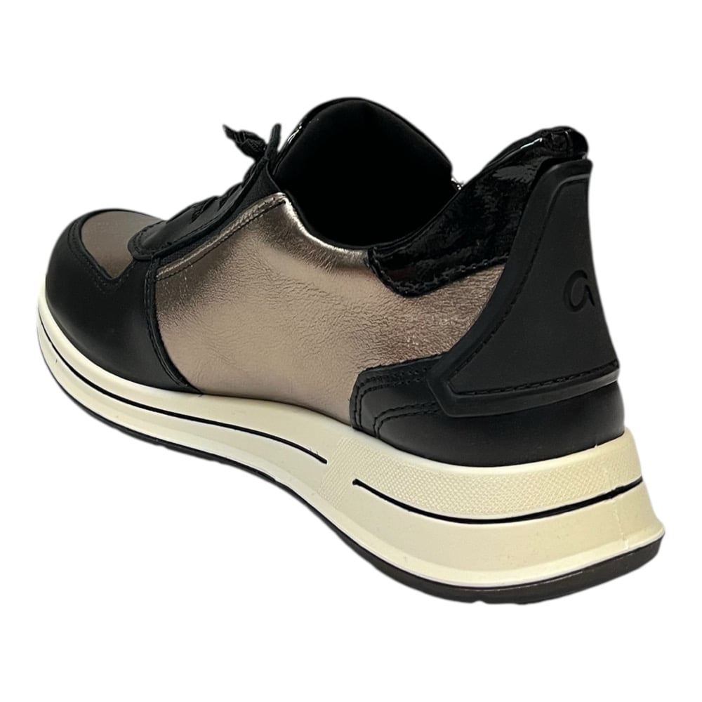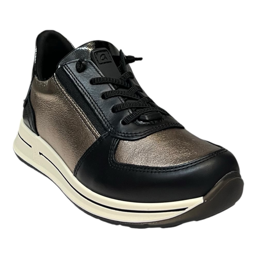 Leather upper. Leather/ Textile lined. Rubber outsole. High soft technology. Step in slip on shoe, no shoe horn needed just push your foot into it and the heel counter serves as a built shoe horn.