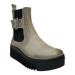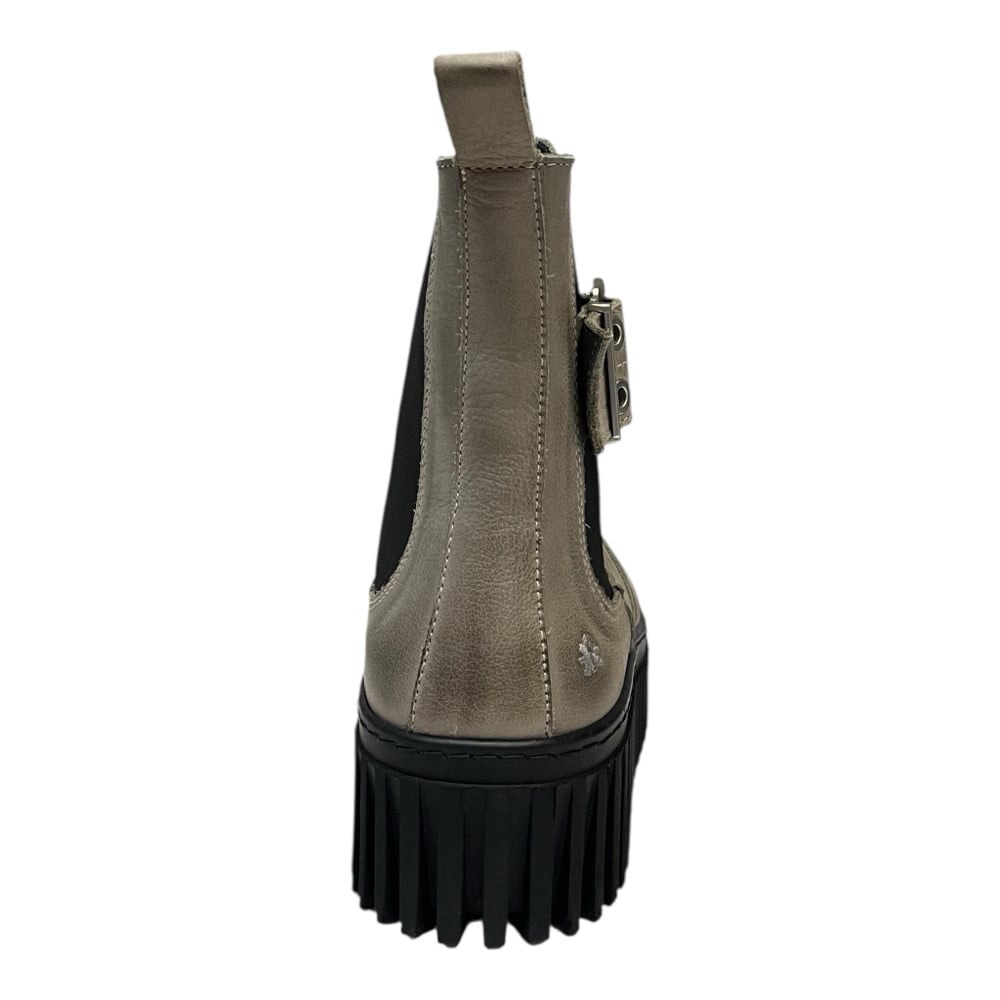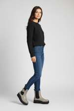 Leather upper. Leather lined. Rubber unit sole. Removable insole. Pull on Chelsea boot. Reg price $255