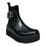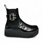 Leather upper. Leather lined. Rubber unit sole. Removable insole. Pull on Chelsea boot. Reg price $255