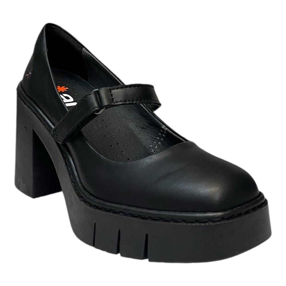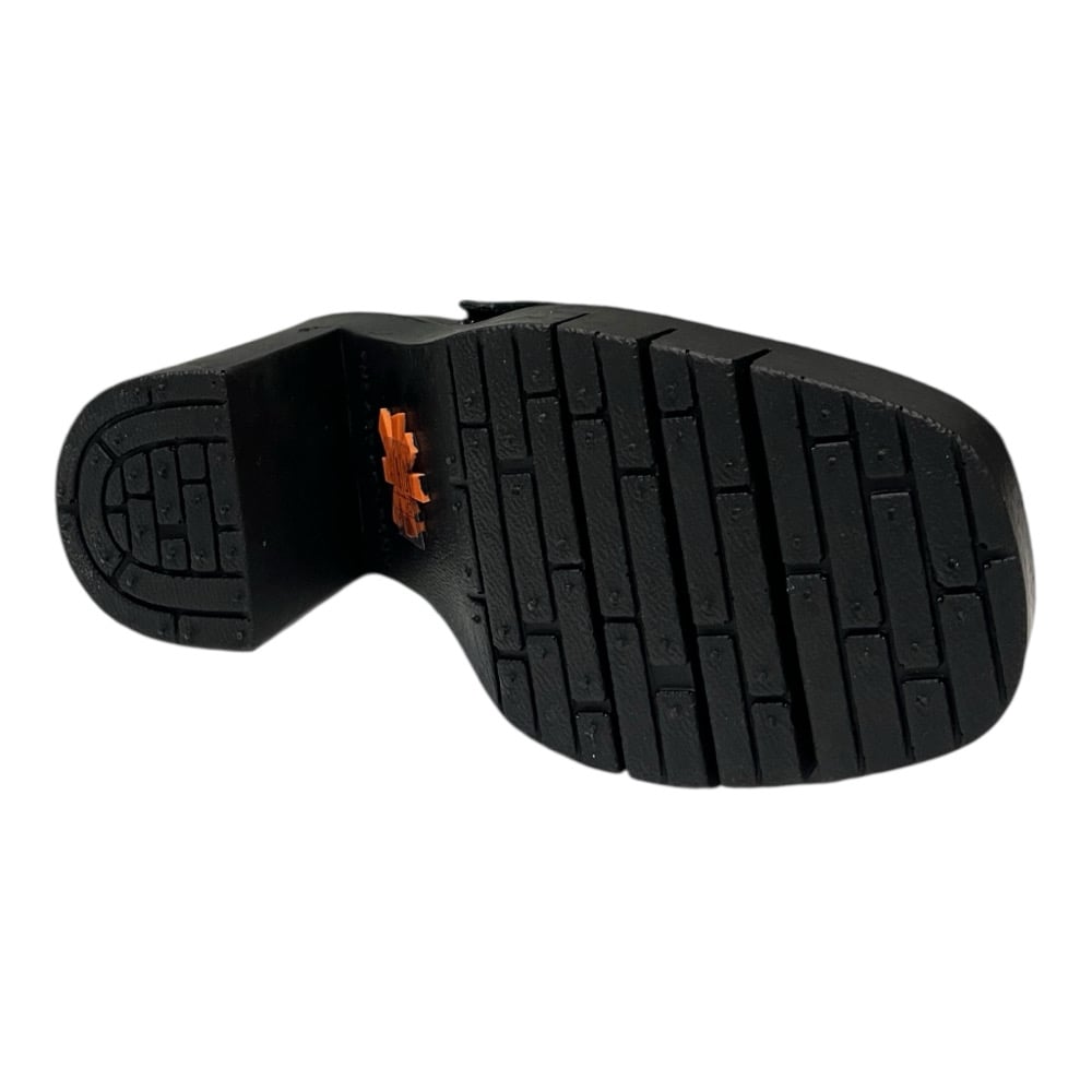 Leather upper. Leather lined. Adjustable instep strap. Soft PU outsole which is very flexible and shock absorbent. 2.5” heel height 1” platform.