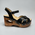 Leather upper. Leather lined. Ortho insole provides maximum support and comfort. Rubber sole. 3” heel height. 2” platform. Adjustable instep strap. $330