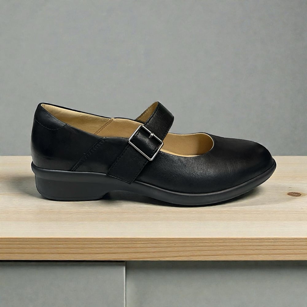 Leather upper. Leather lined. Ortho insole provides maximum support and comfort. Rubber sole. Adjustable Velcro instep strap.