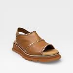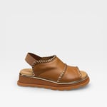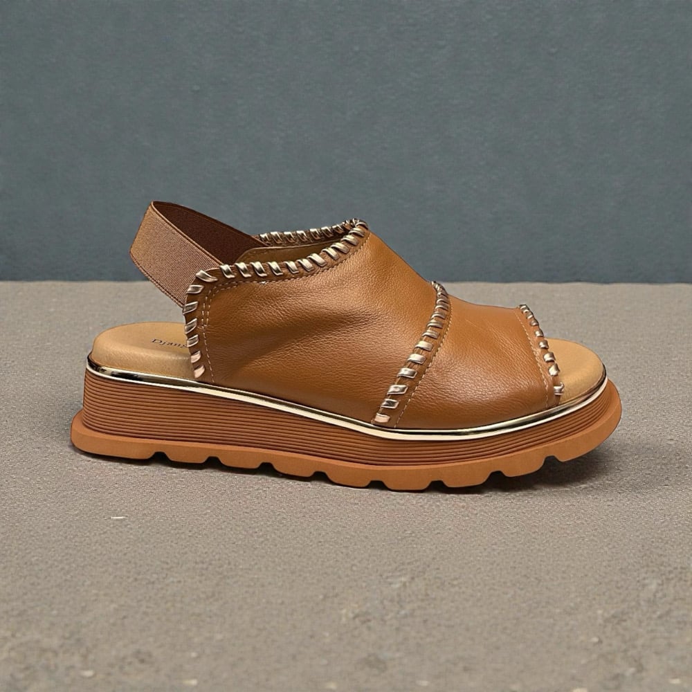 Leather upper. Leather lined. Rubber outsole. Elastic back strap.