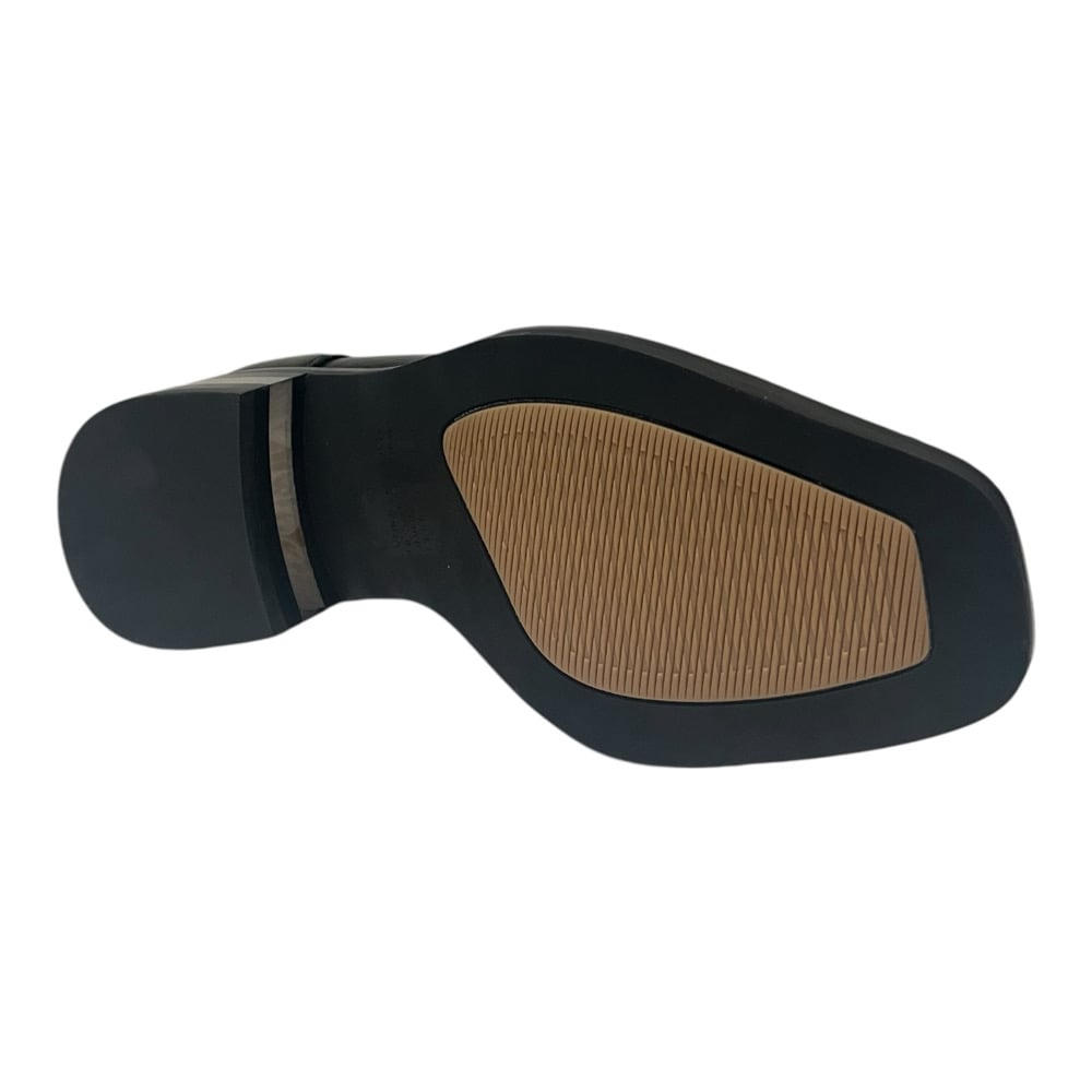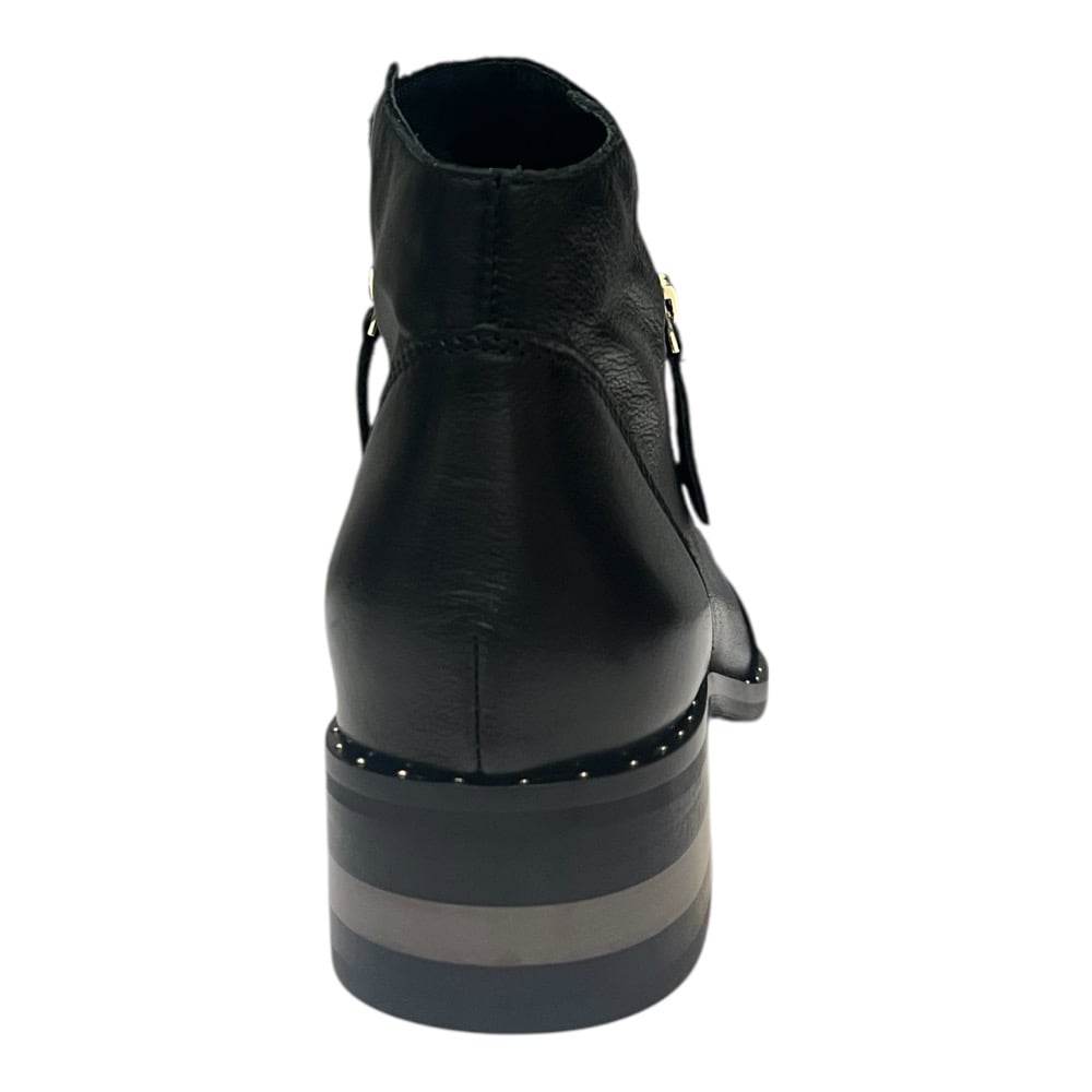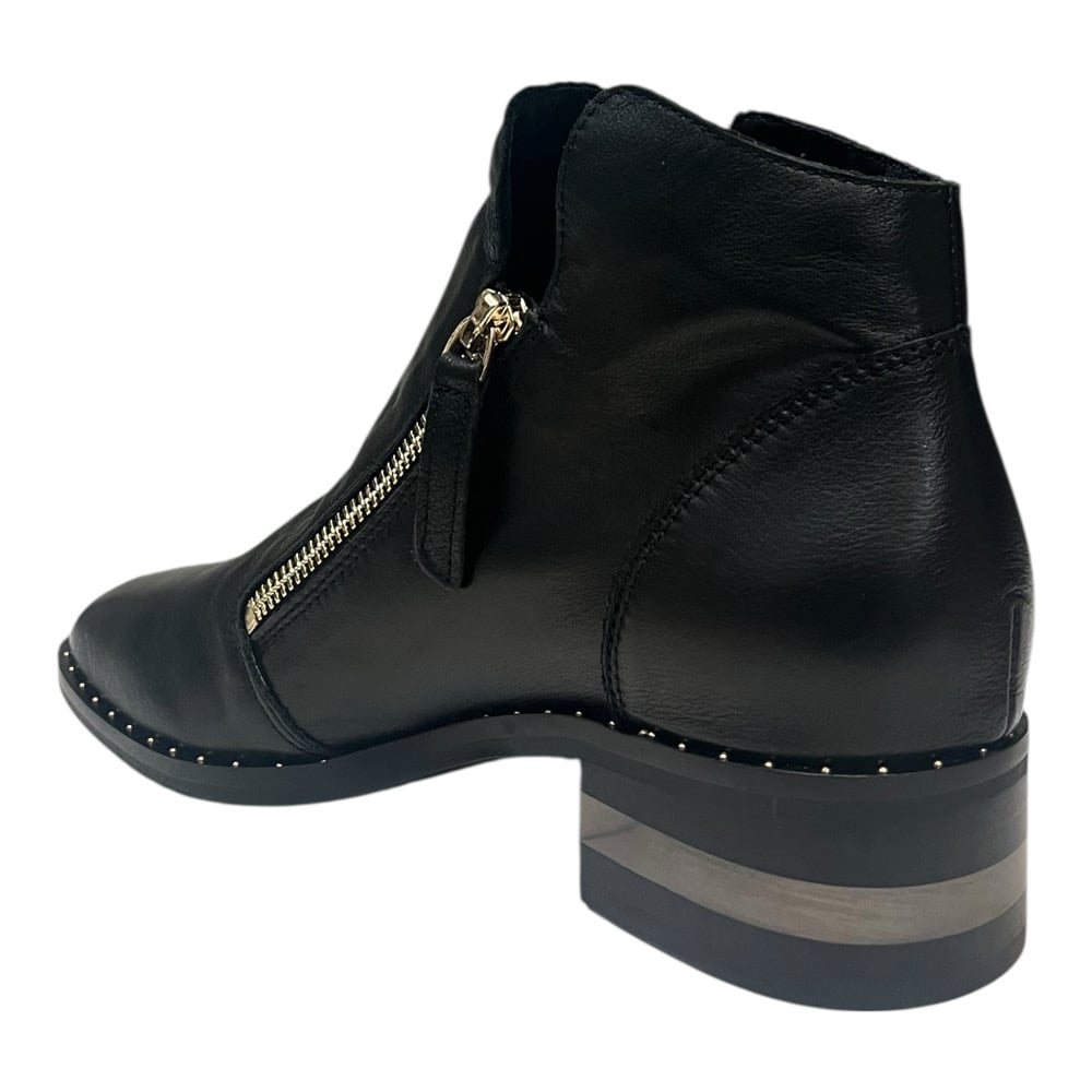 Leather upper. Unlined. Leather Insole. Double zipper entry. Synthetic outsole with grip. 1” heel height.