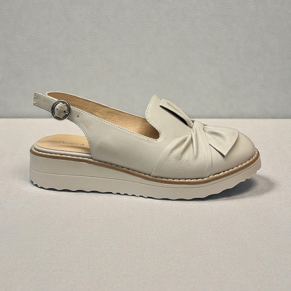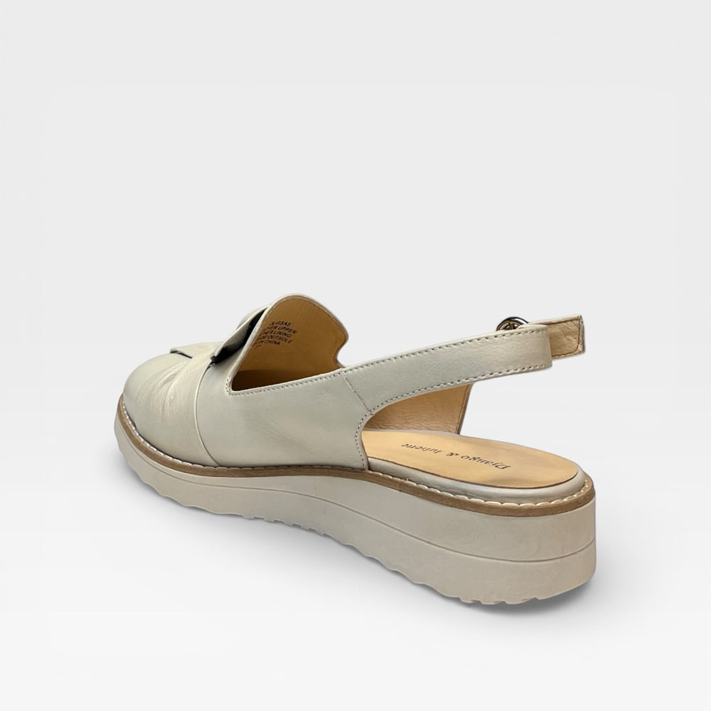 Leather upper. Leather lined. Rubber outsole. Adjustable back strap.