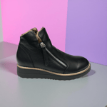 Leather upper. Faux fur lined. Double zipper entry. Rubber outsole.
