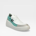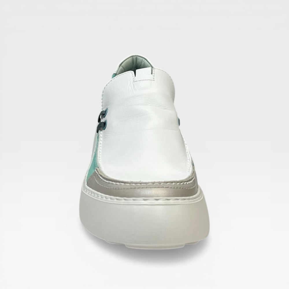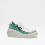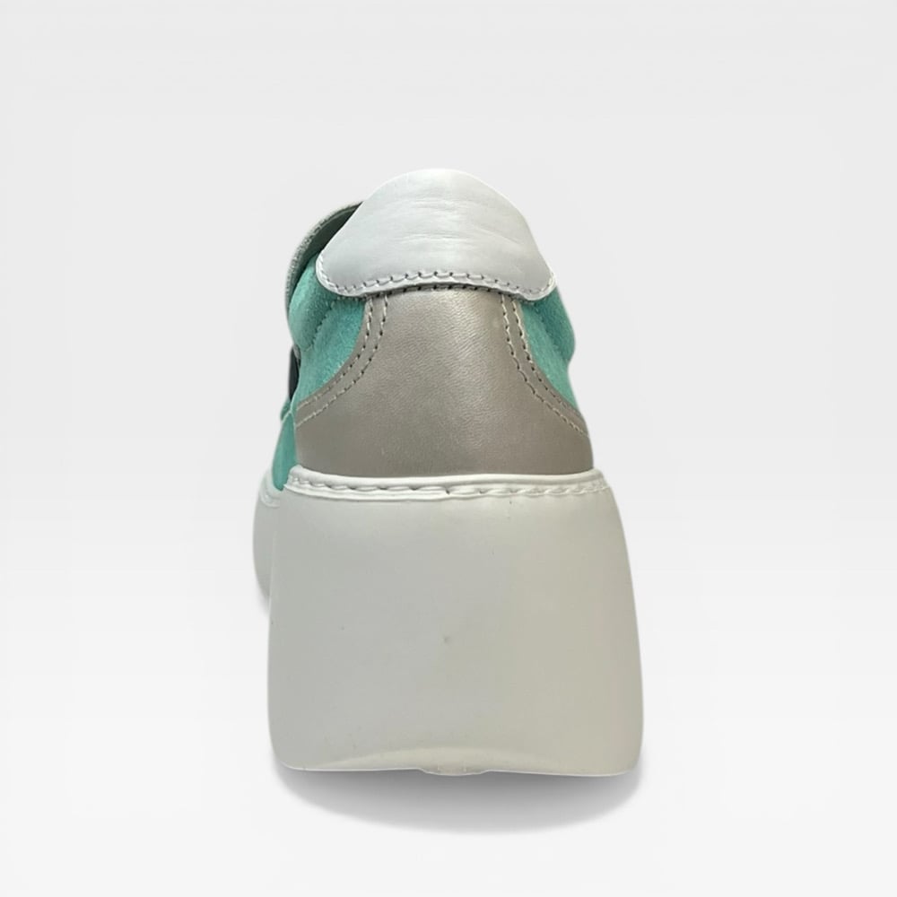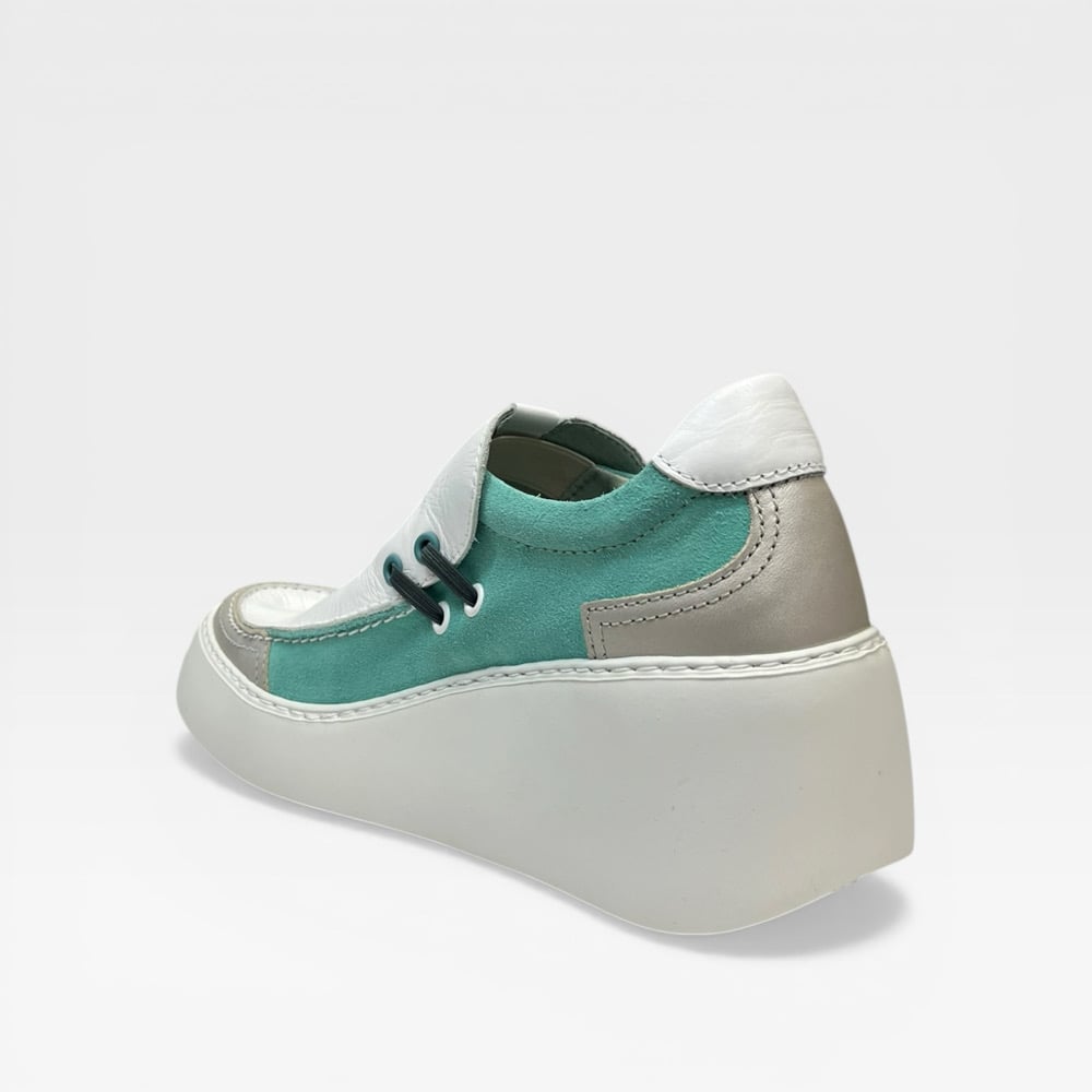 Leather upper. Leather lined. Rubber outsole. 2.5” wedge 1” platform. Slip on. $275