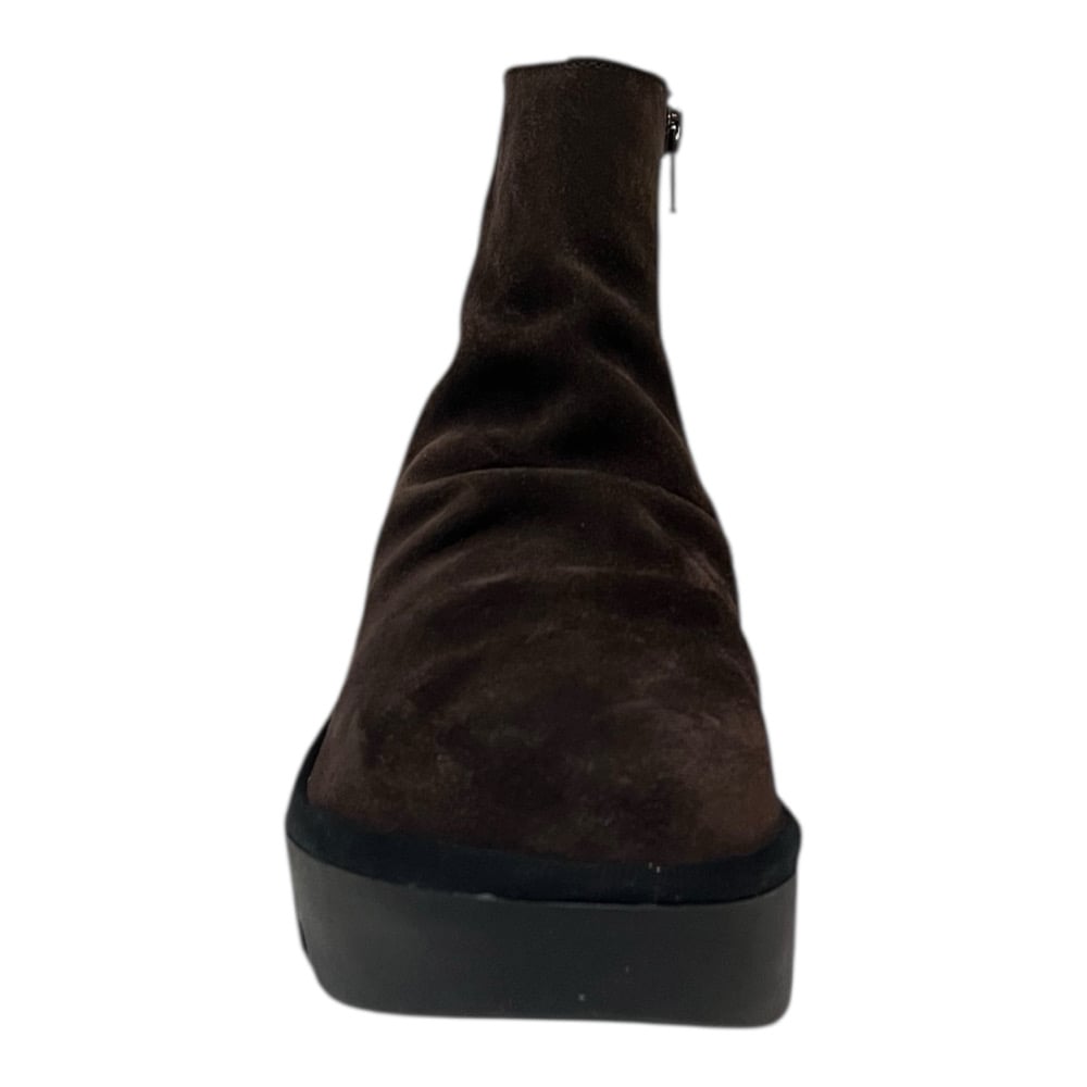 Leather upper. Drylex lined. Rubber outsole. 2.5” wedge 1” platform. Inside zipper entry.
