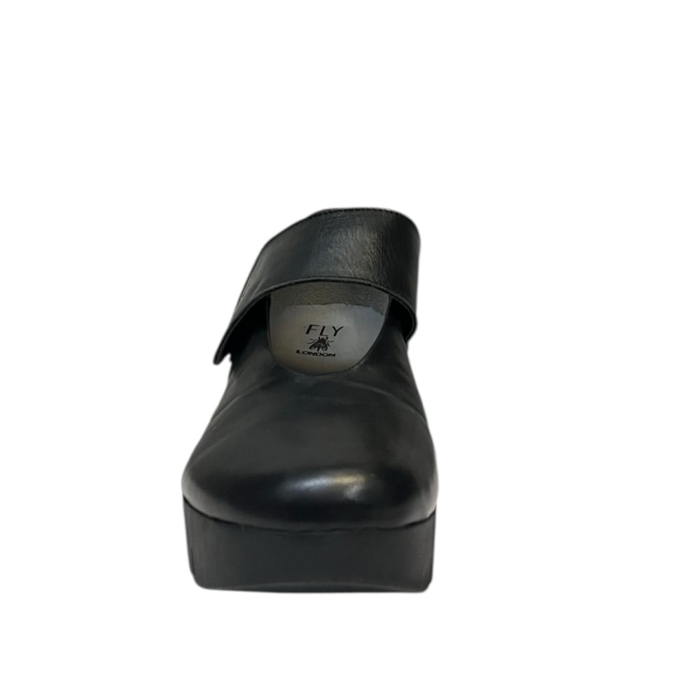 Leather upper. Leather lined. Rubber outsole. 2.5” wedge 1” platform. Velcro instep strap.