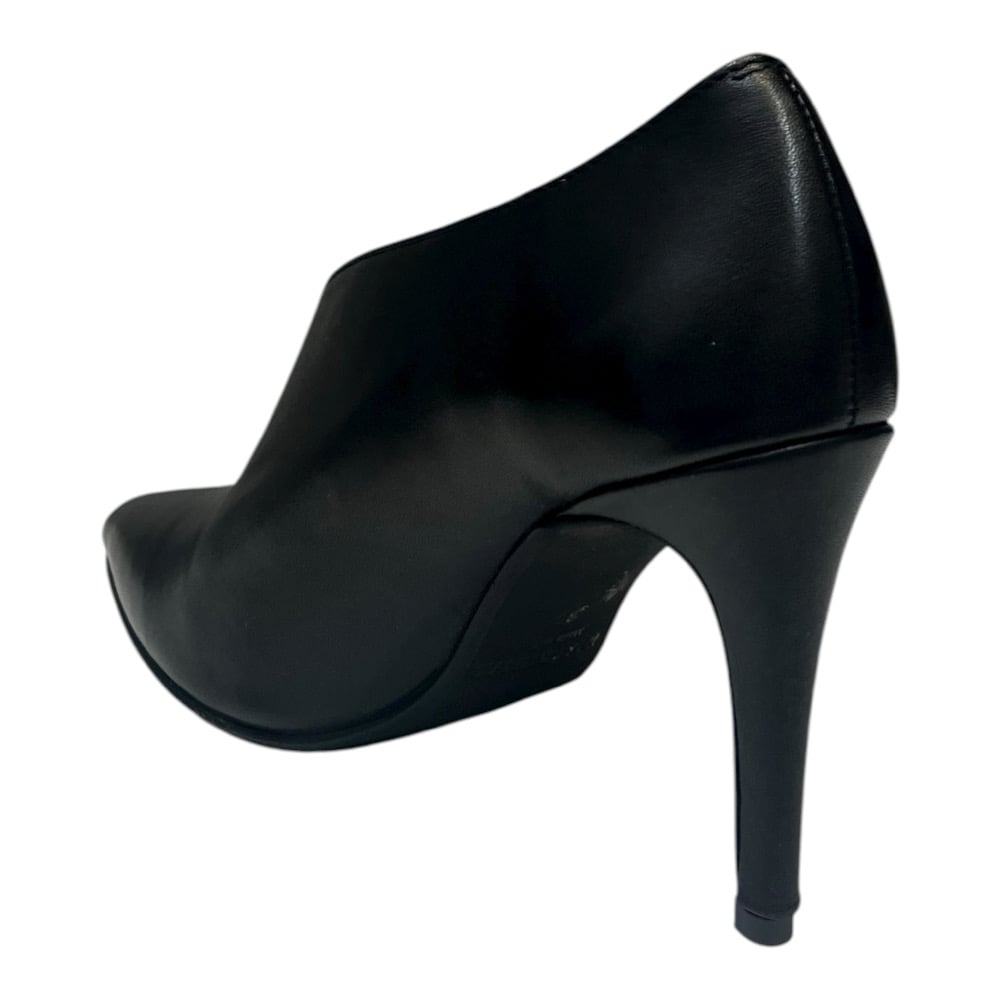 Leather upper. Leather lined. Rubber outsole. 3.5” heel height.