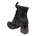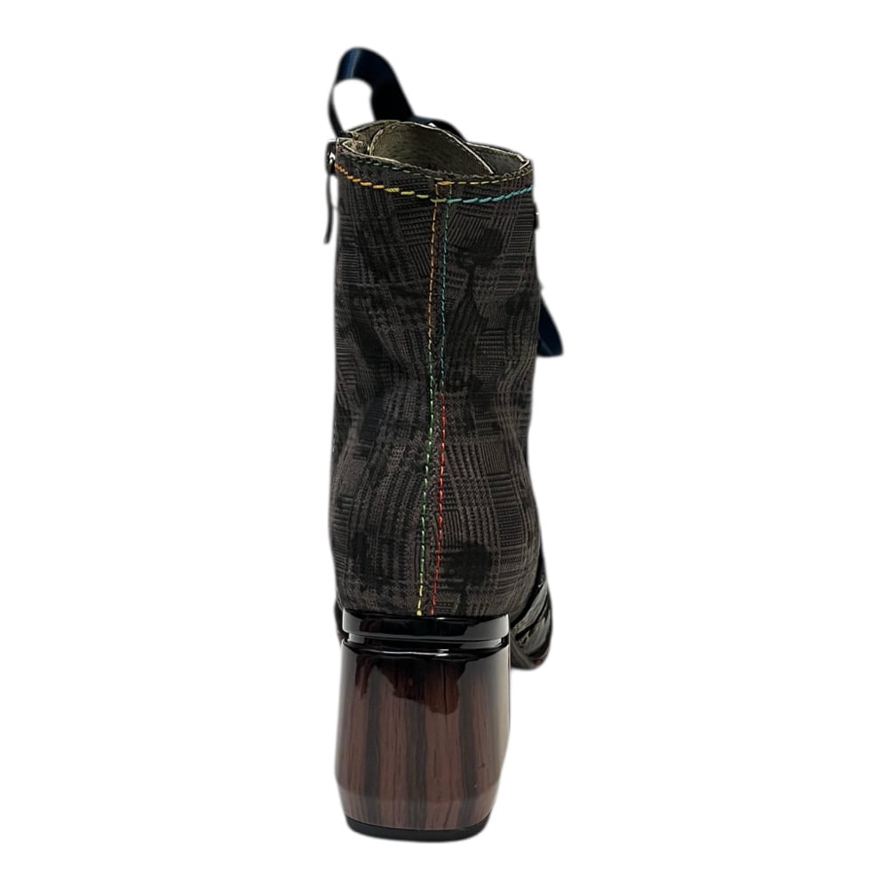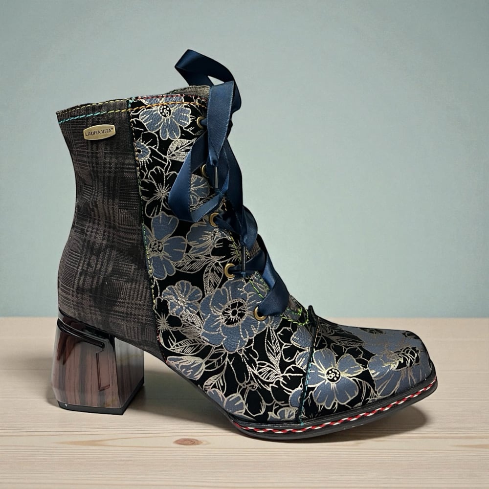 Leather upper. Microfibre lined. Rubber sole. Inside zipper. Adjustable laces. 2.5” heel. Reg price $225