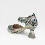 Leather upper. Leather lined. Rubber sole. Velcro ankle strap. 2.5” heel height. $180