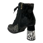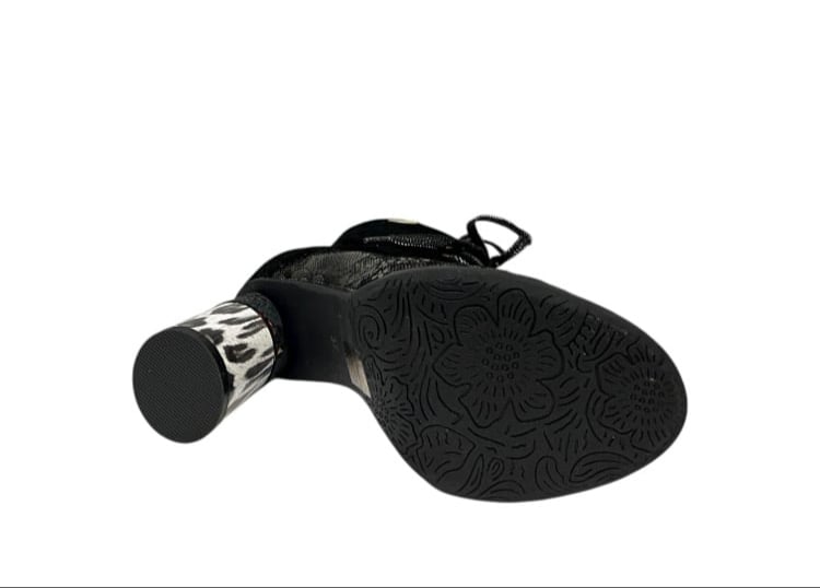 Leather upper. Microfibre lined. Rubber sole. Inside zipper. Adjustable laces. 2.5” heel. Reg price $235