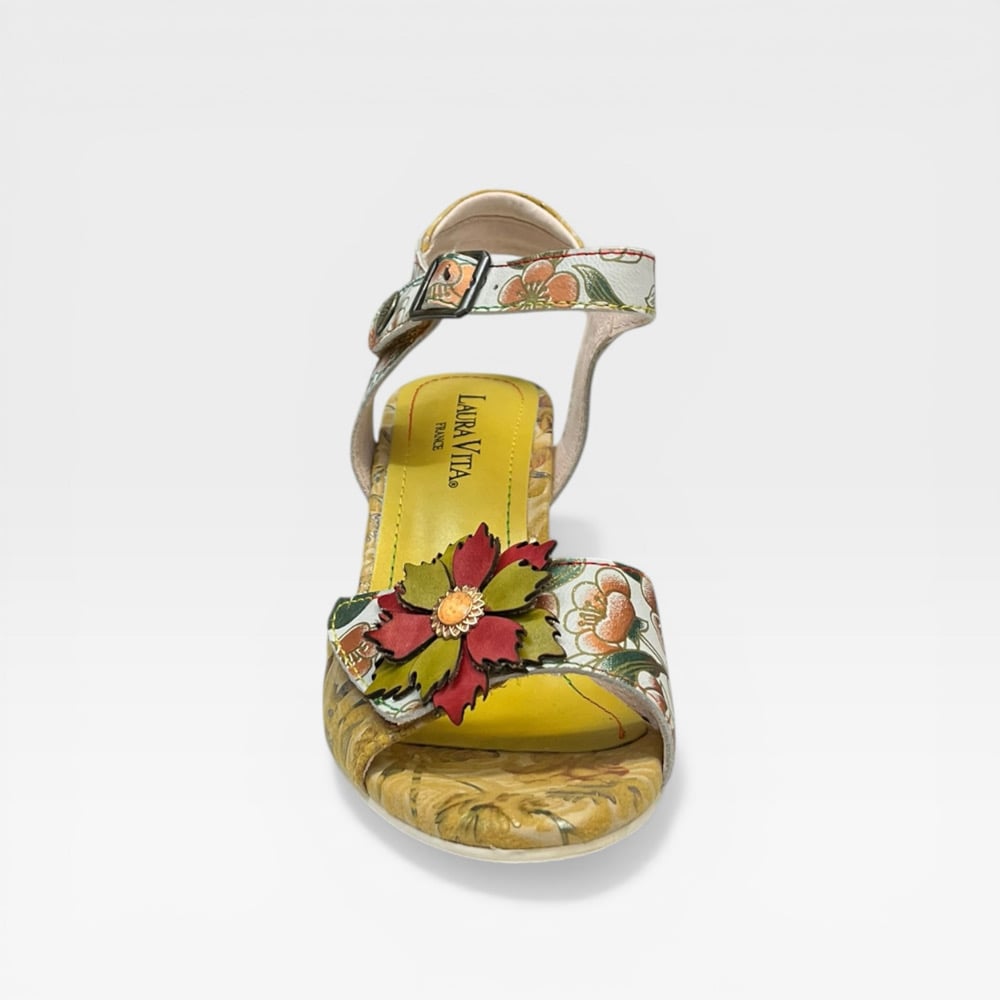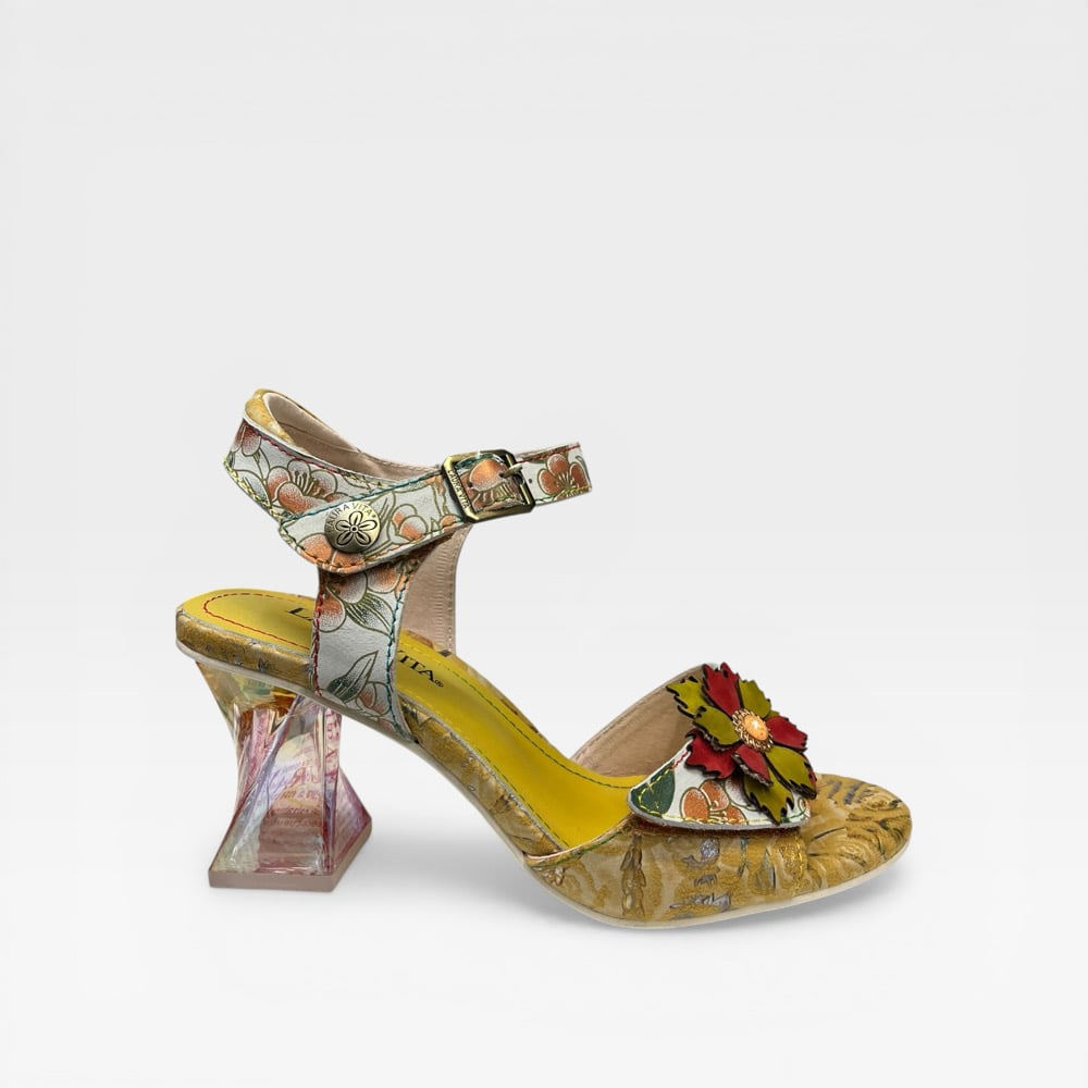 Leather upper. Leather lined. Rubber sole. Adjustable Velcro straps. 2.5” heel height. $155