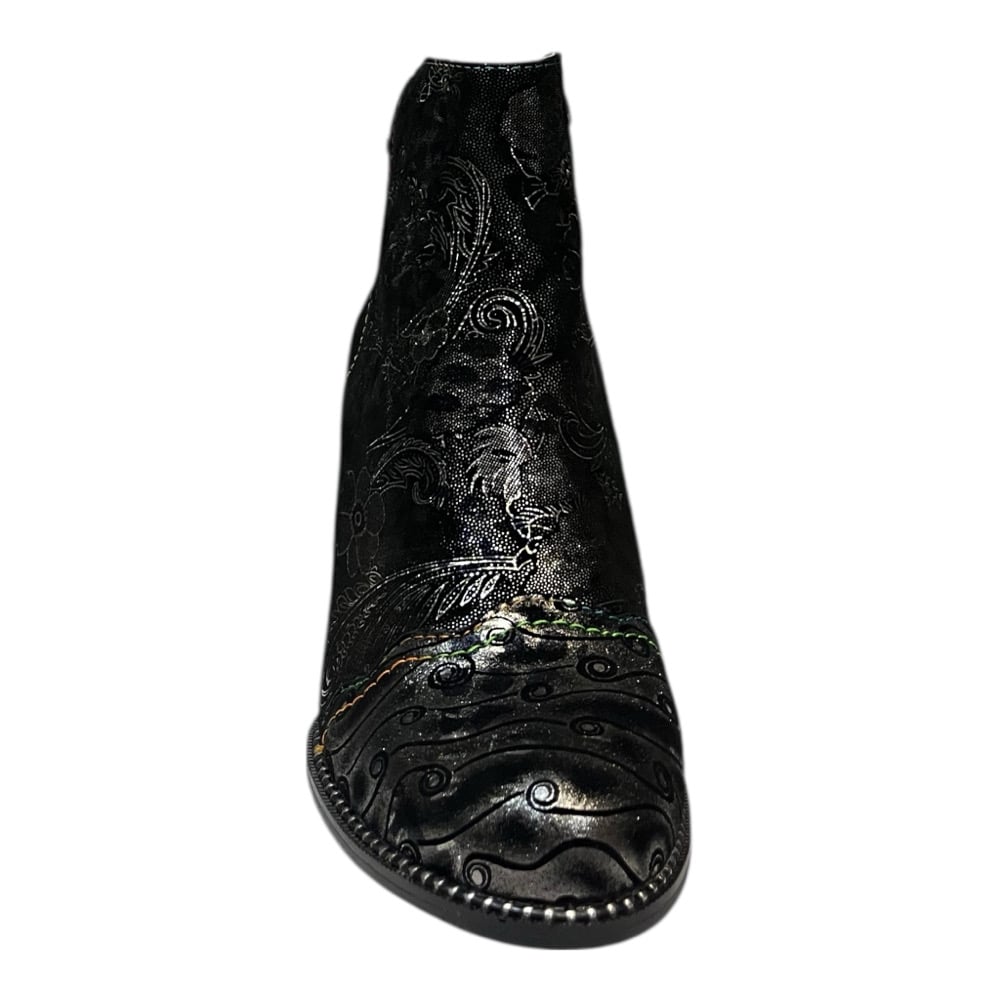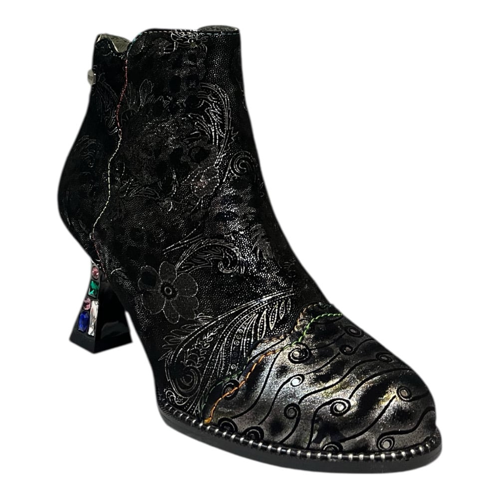 Leather upper. Microfibre lined. Rubber sole. Inside zipper. 3” heel. Reg price $240