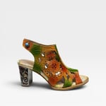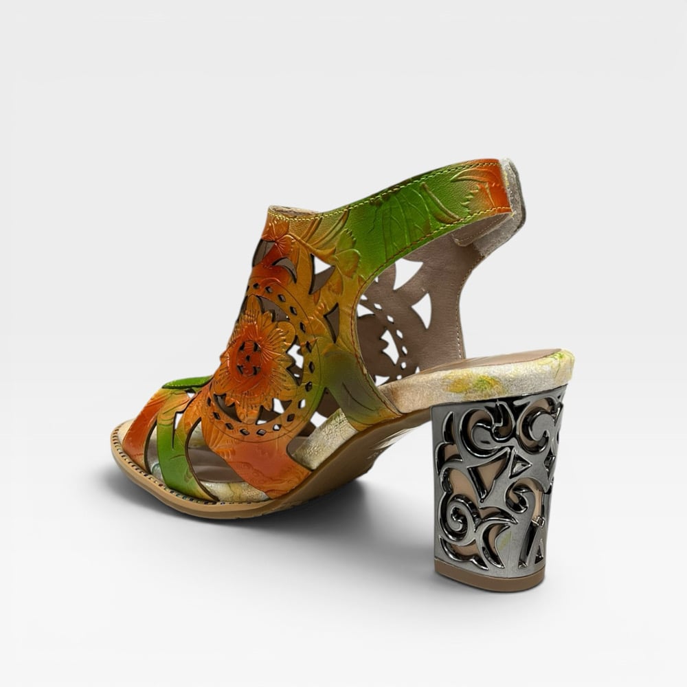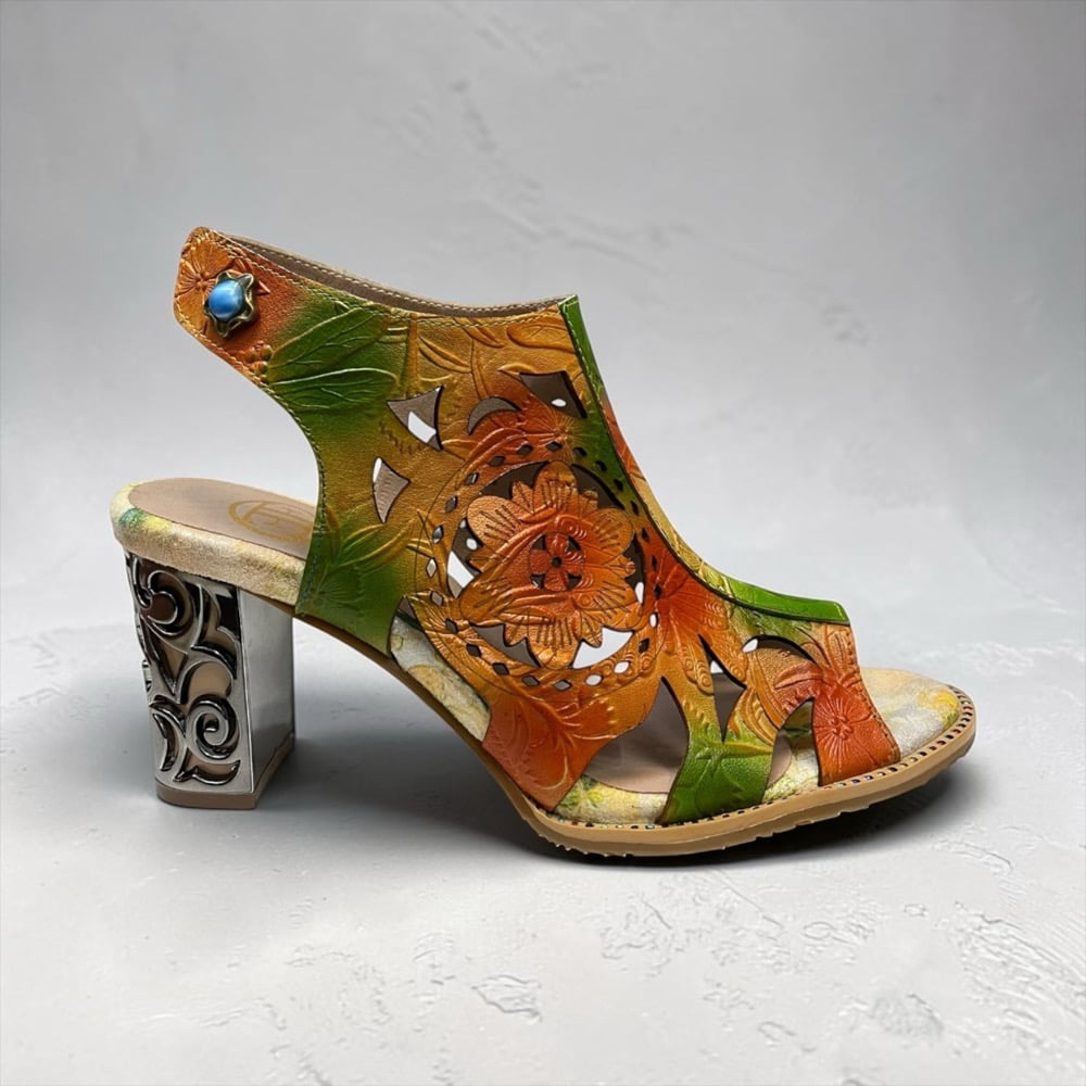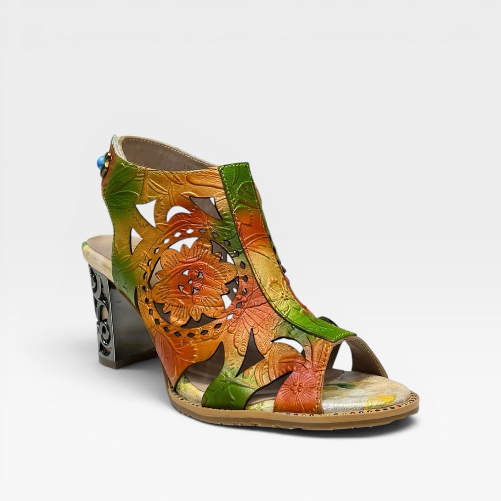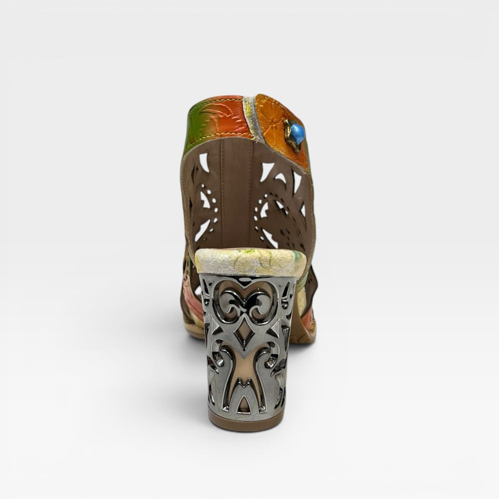 Leather upper. Leather lined. Rubber outsole. Velcro backstrap. 3” heel. $165