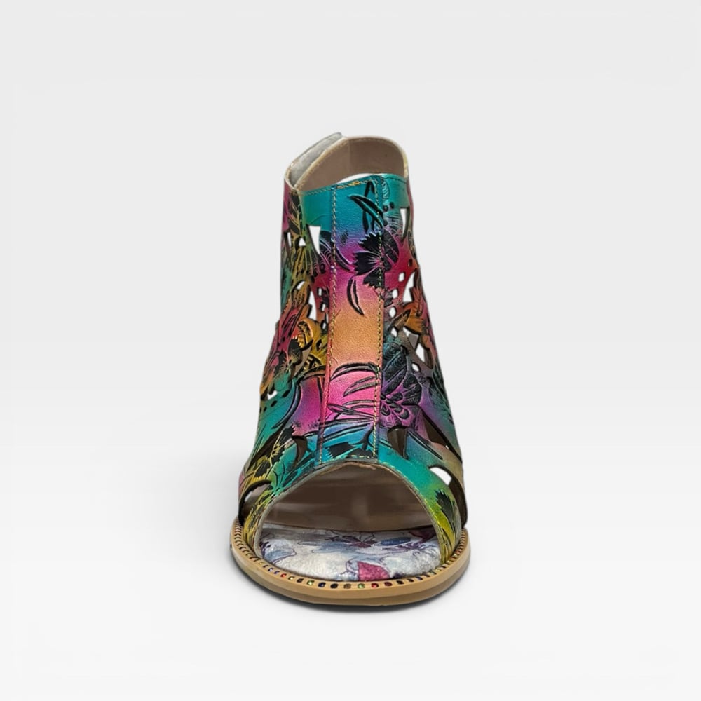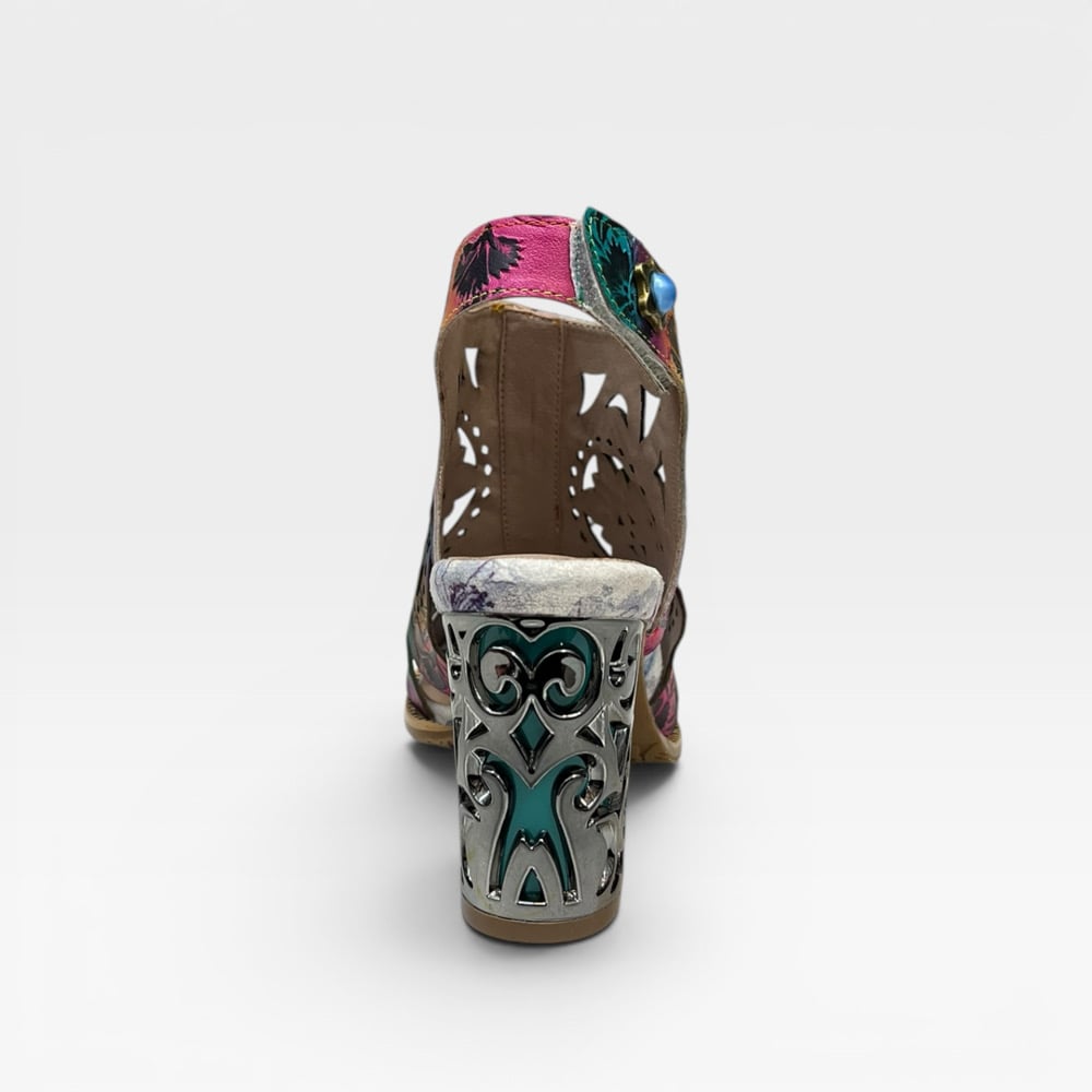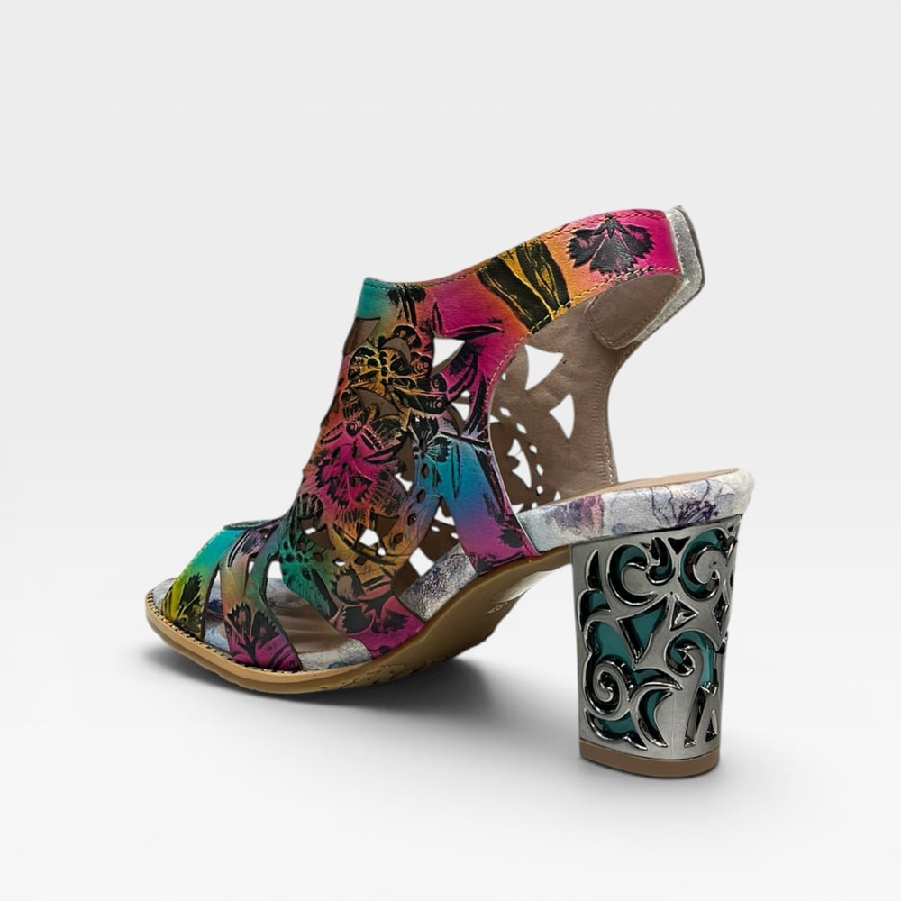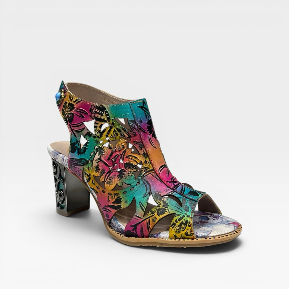 Leather upper. Leather lined. Rubber outsole. Velcro backstrap. 3” heel. $165