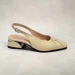 Leather upper. Leather lined. Synthetic outsole. 1.5” heel height. Adjustable back strap. $185