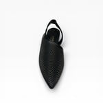 Leather upper. Leather lined. Rubber outsole. 1” heel height. Elastic onback strap. $225