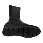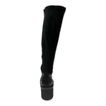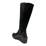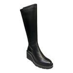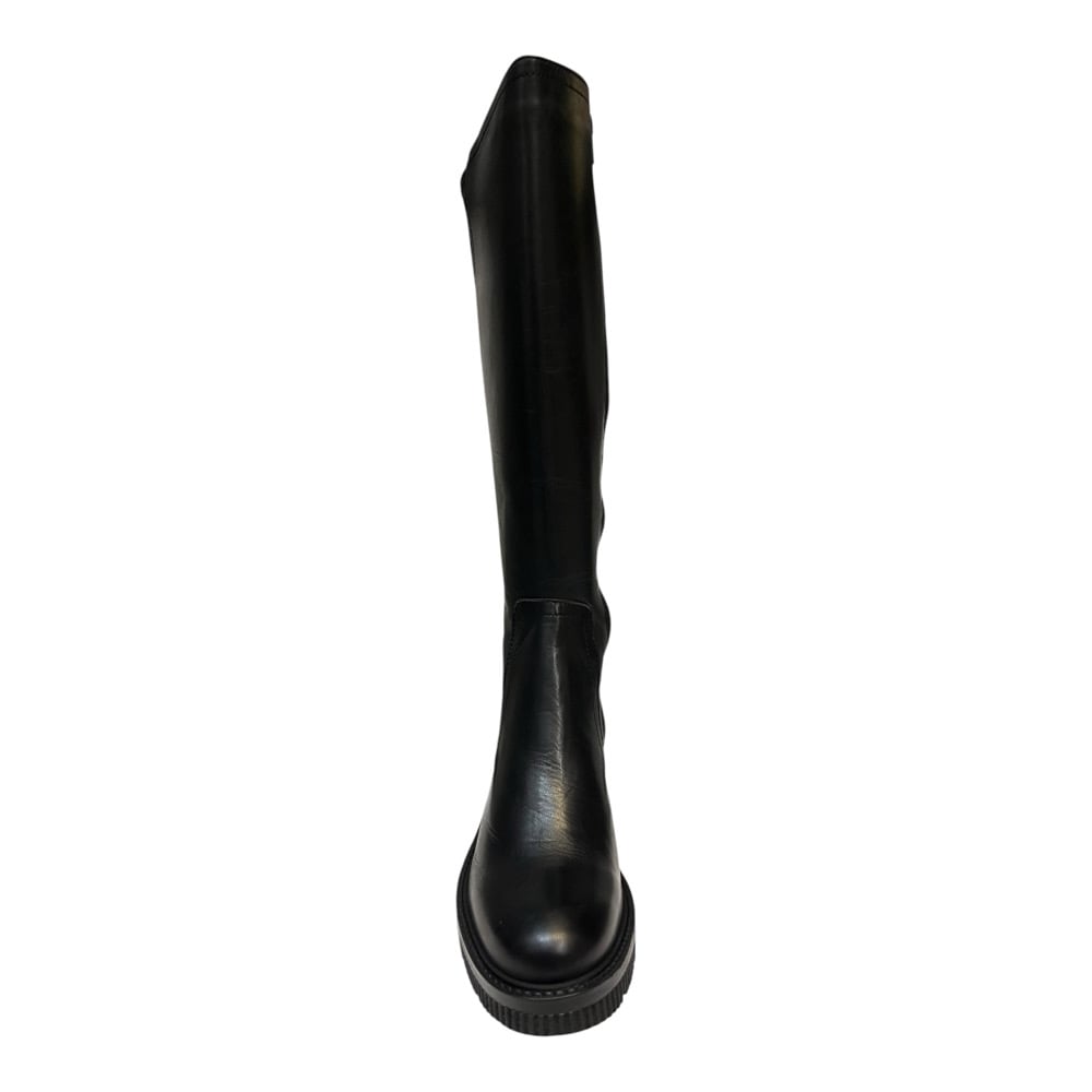 Leather upper. Leather and textile lined. Inside zipper entry. Microfibre and stretch on the calf. Rubber outsole. 3” heel height and 1” platform