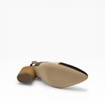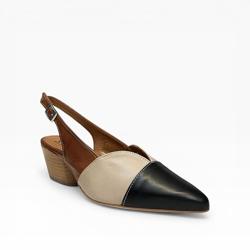 Leather upper. Leather lined. Rubber outsole. 1.5” heel height. Adjustable back strap. $210