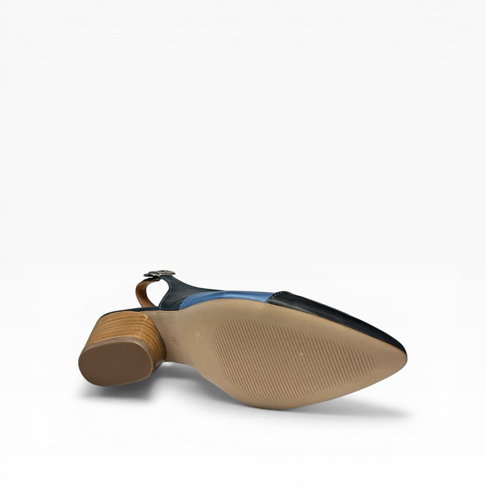 Leather upper. Leather lined. Rubber outsole. 1.5” heel height. Adjustable back strap. $210