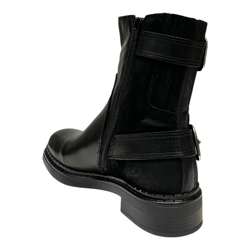 Leather and oiled suede upper. Leather lined. Inside zipper entry. Rubber outsole.