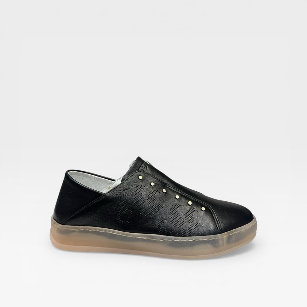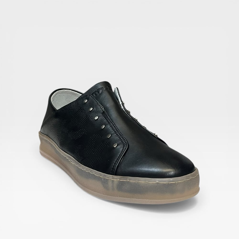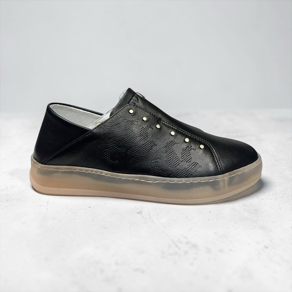 Nappa Leather upper. Nappa Leather lined. Rubber unit. Back folds down as a slipper. Removable insole.$255