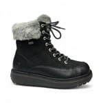 Leather upper. Wool lined. Non slip rubber outsole with ice grip. Inside zipper. TEX membrane keeps moisture out. Adjustable laces