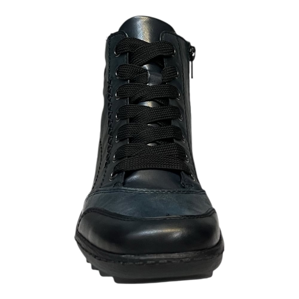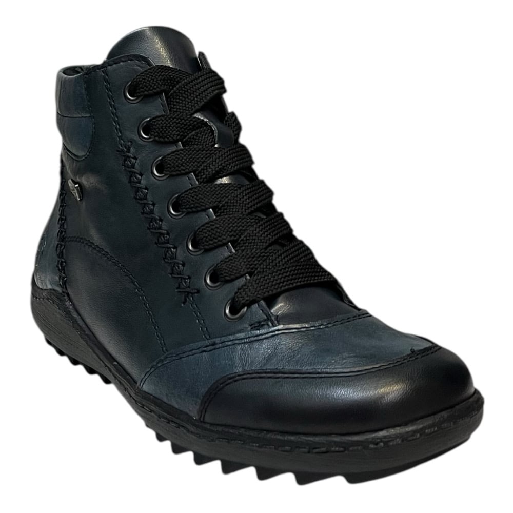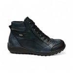 Leather upper. Polyester lined. Rubber outsole. Inside zipper. Adjustable laces. TEX membrane keeps moisture out.