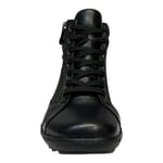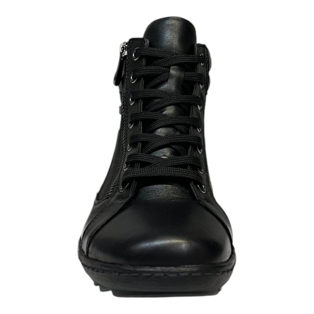 Leather upper. Polyester lined. Rubber outsole. Inside zipper. Adjustable laces. TEX membrane keeps moisture out.
