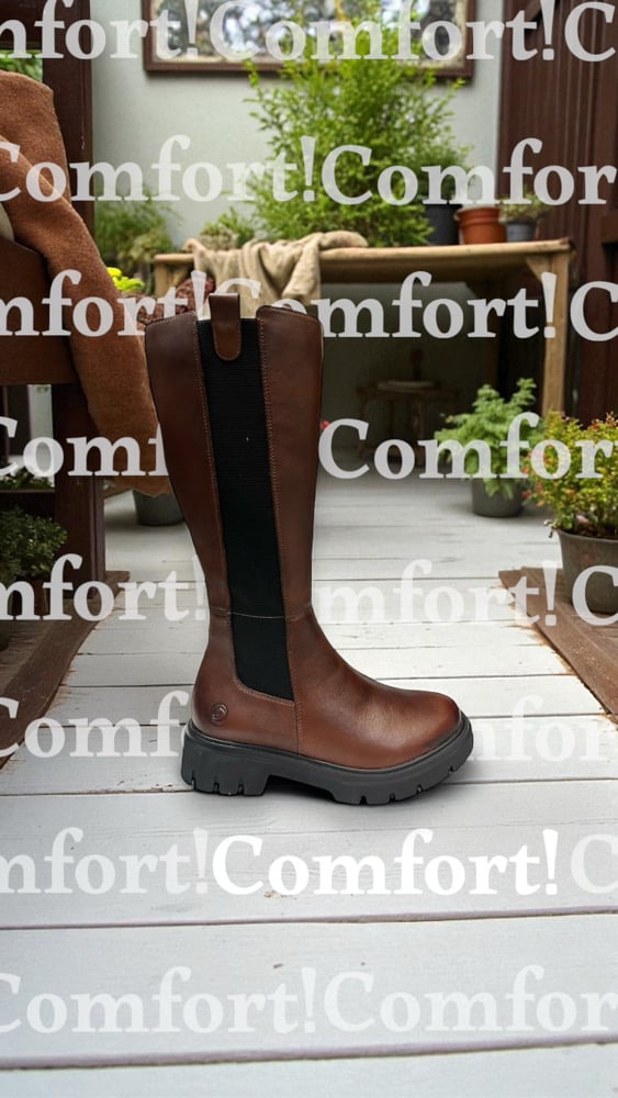 Leather/Stretch upper. Polyester lined. Light weight EVA outsole with grip. Inside zipper. Stretch on side fits a variety of calf sizes.