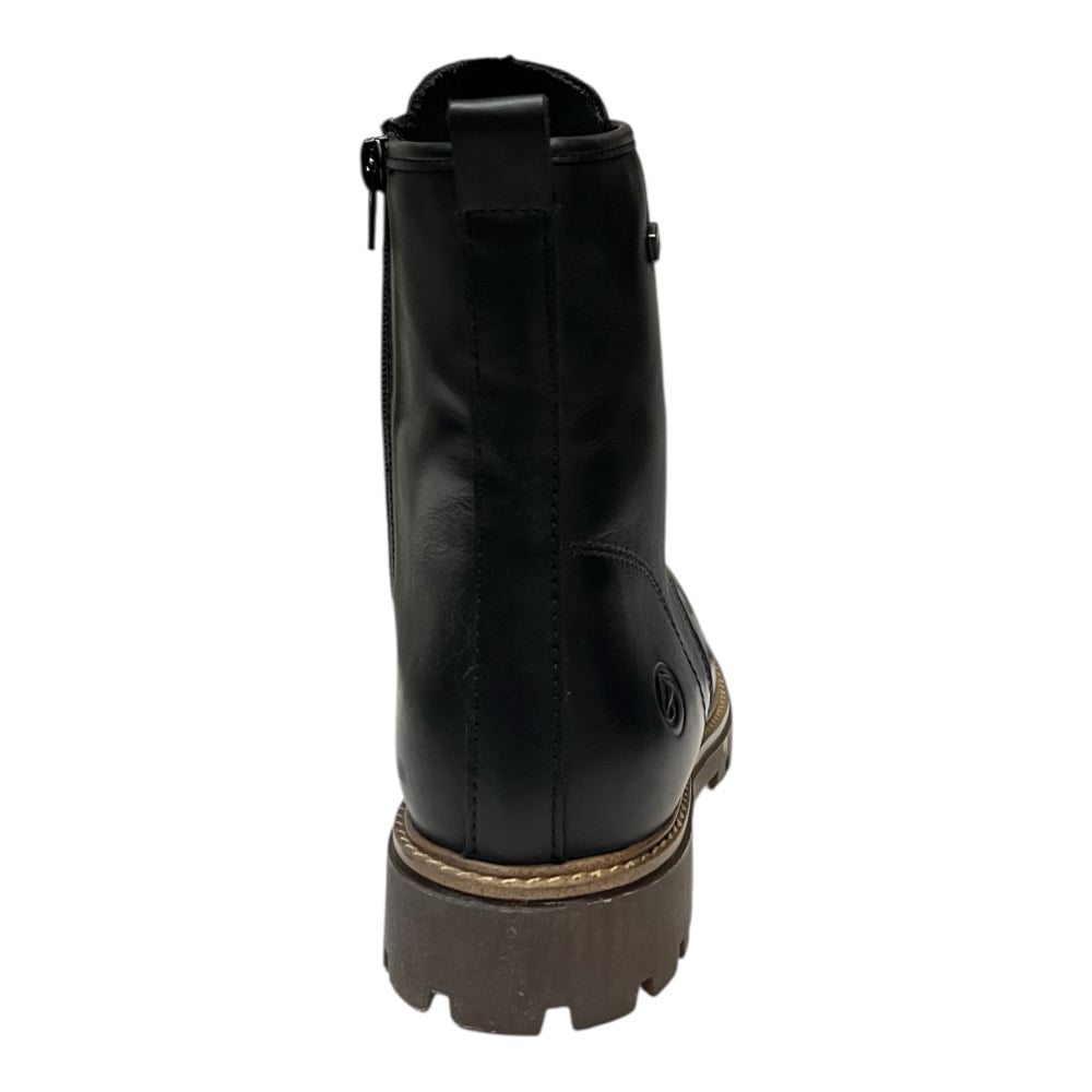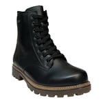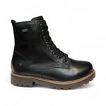 Leather upper. Polyester lined. Rubber outsole. Inside zipper. Adjustable laces. TEX membrane keeps moisture out.