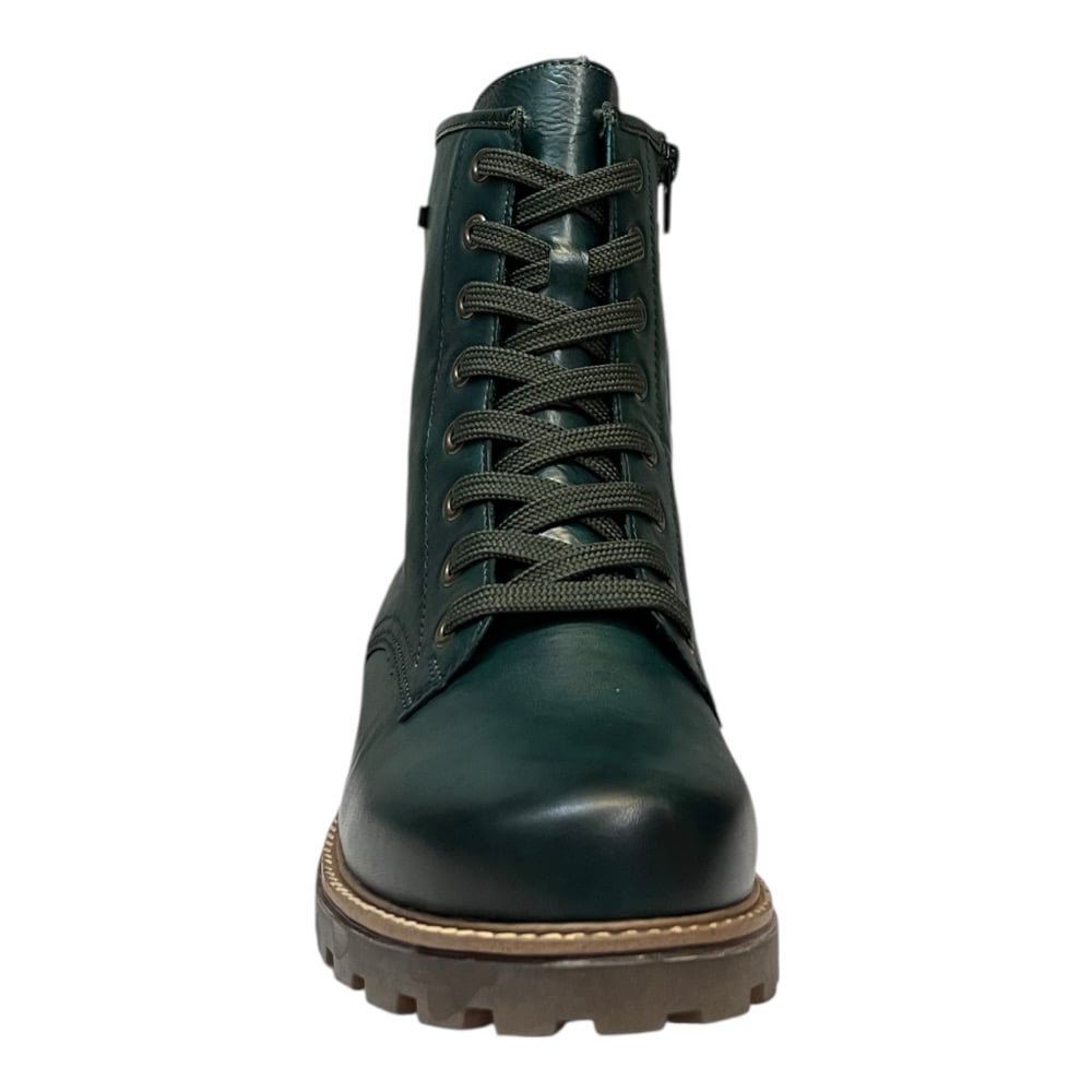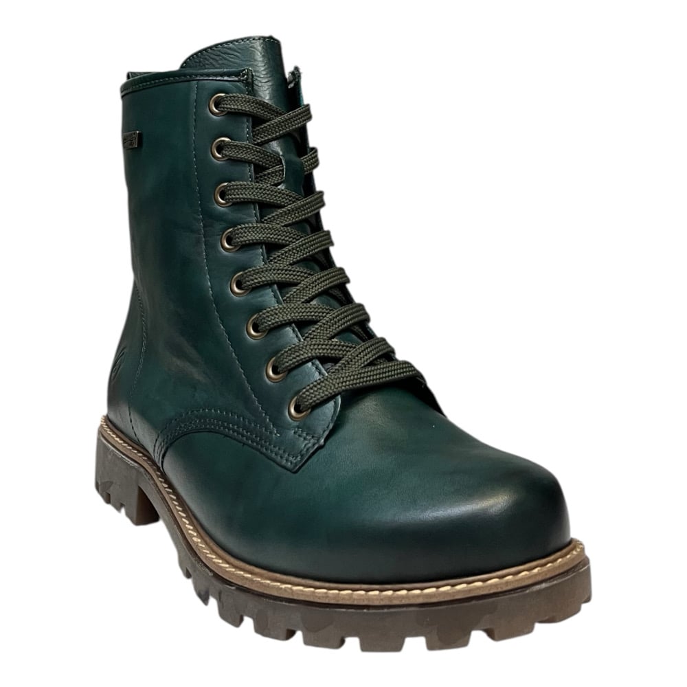 Leather upper. Polyester lined. Rubber outsole. Inside zipper. Adjustable laces. TEX membrane keeps moisture out.