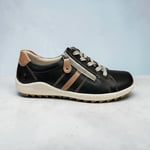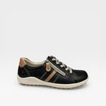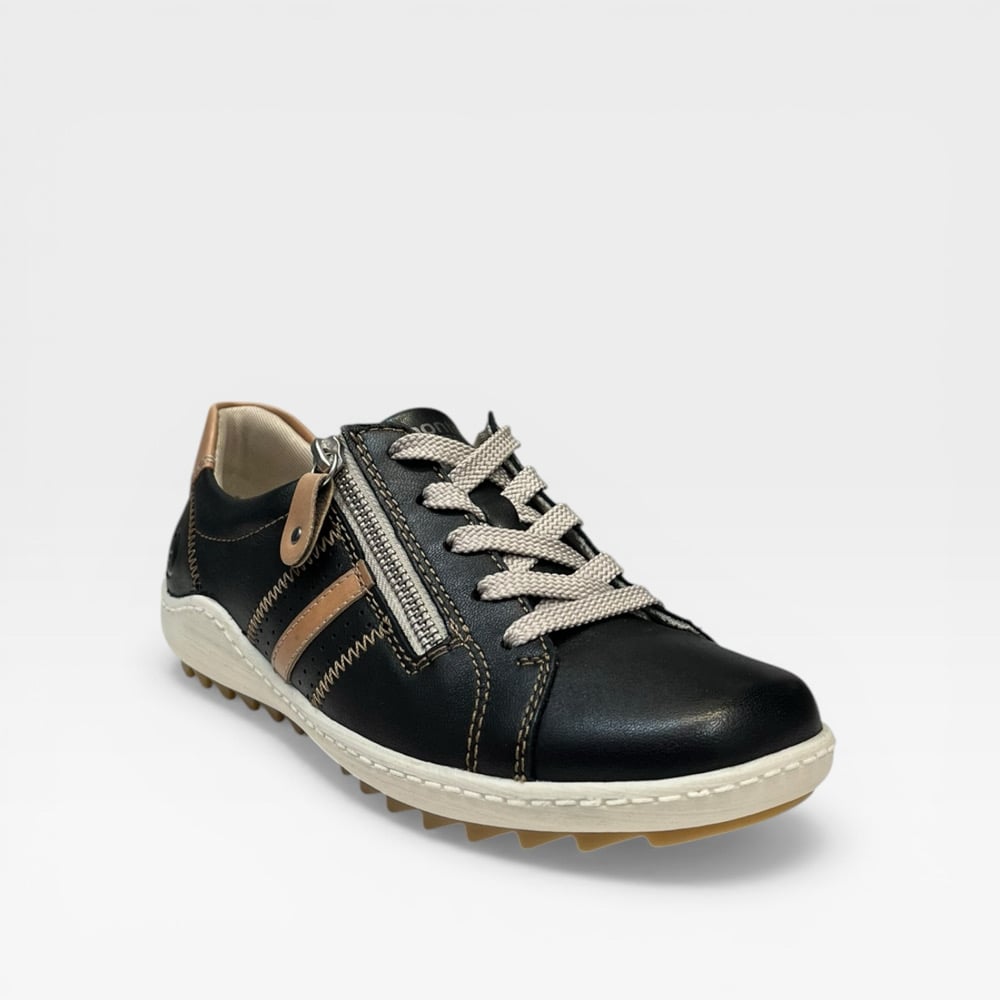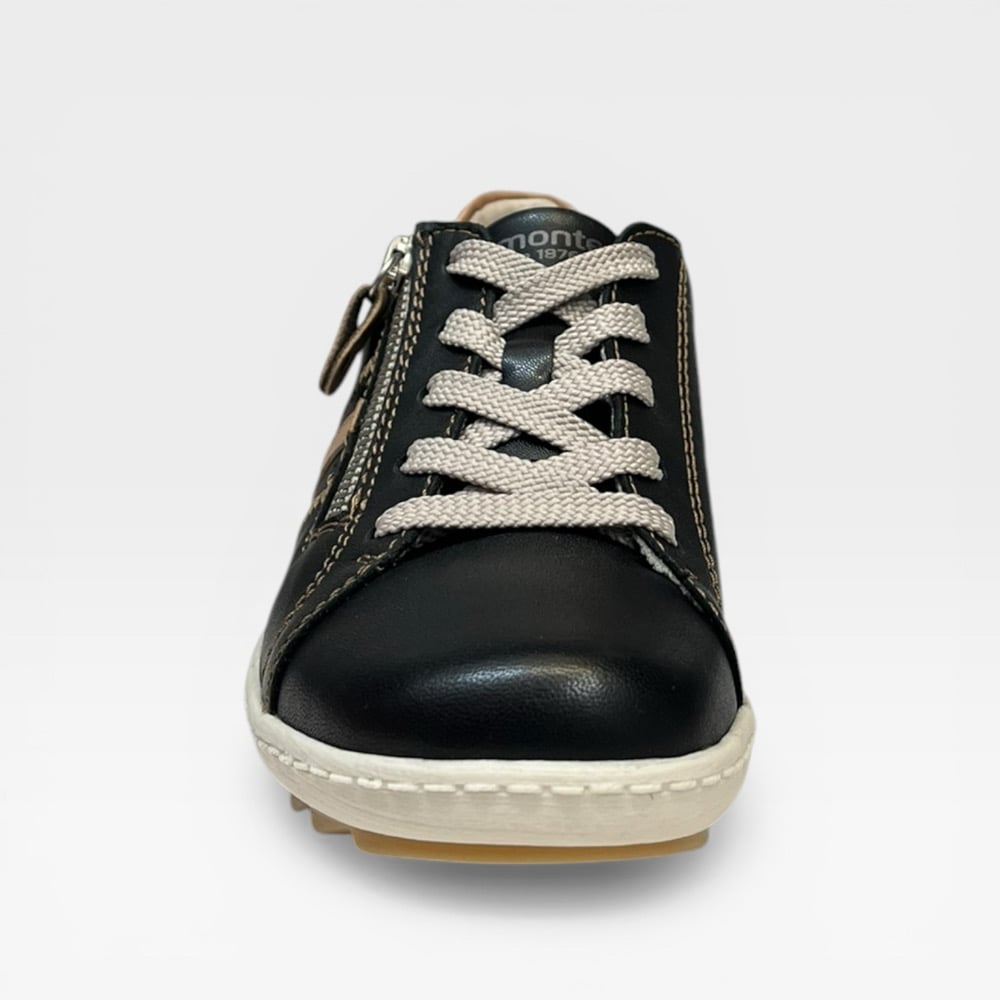 Leather upper. Polyester lined. Rubber outsole. Outside zipper. Adjustable laces.