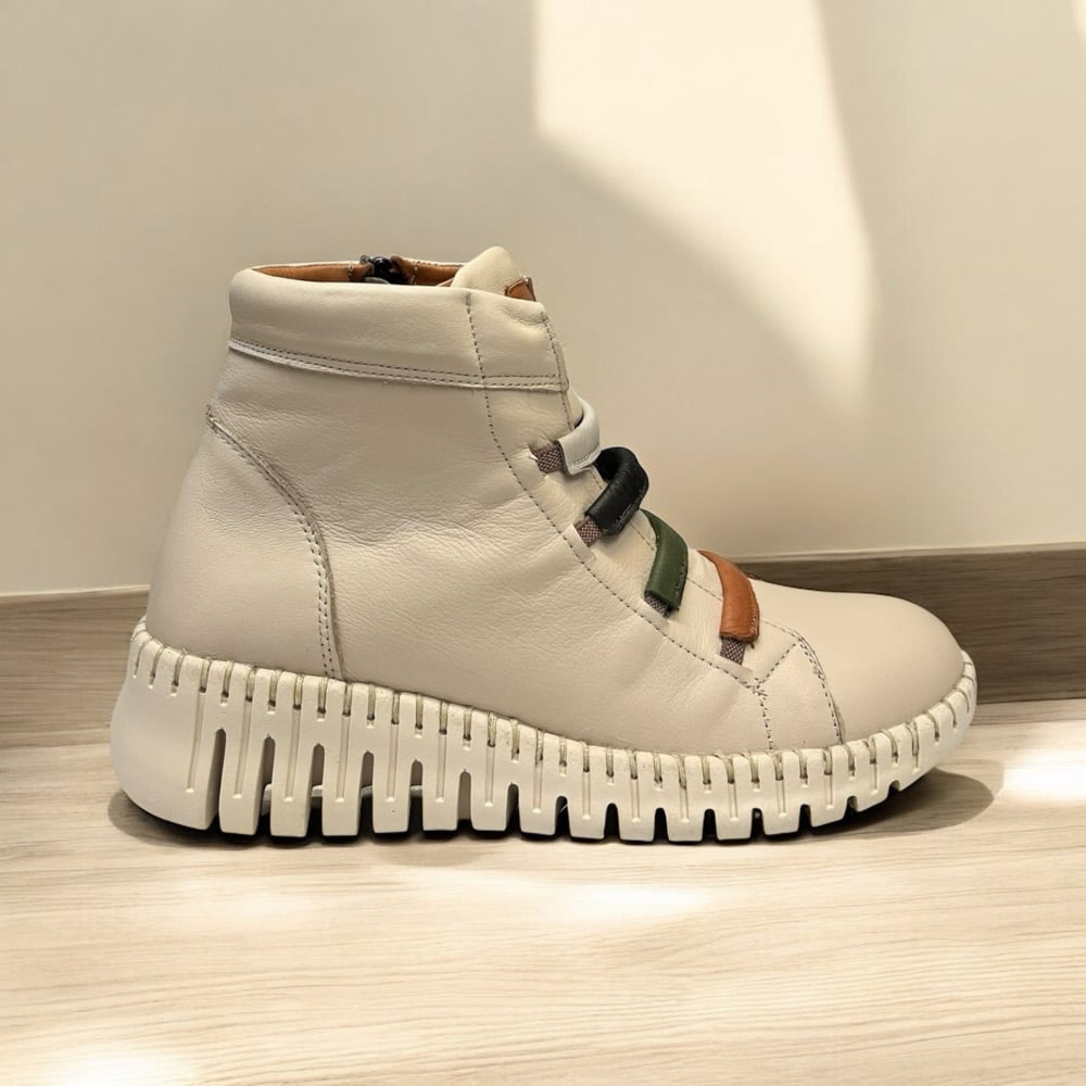 Leather upper. Leather lined. Inside zipper entry. PU outsole. Removable insole.