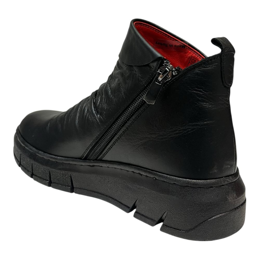 Soft Leather upper. Leather insole. Rubber unit sole. Inside zipper.