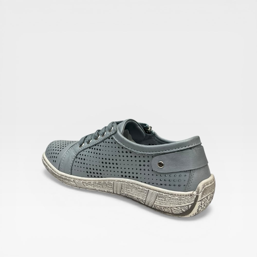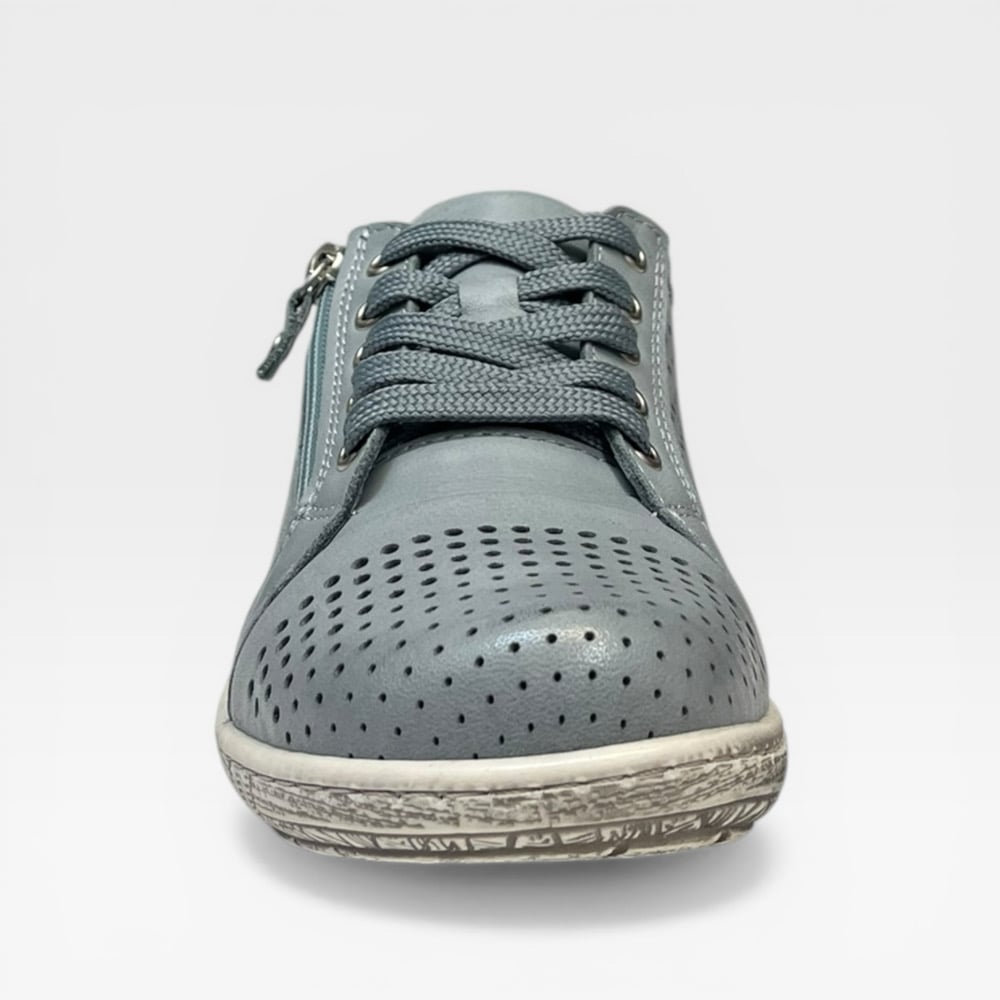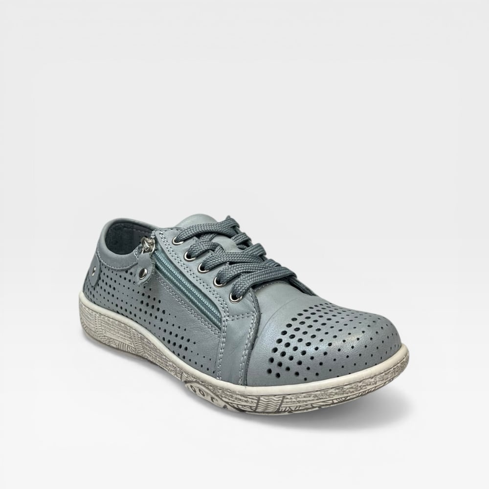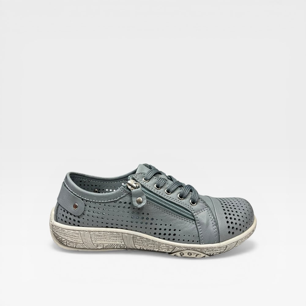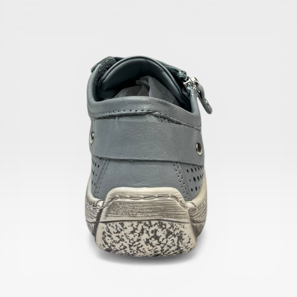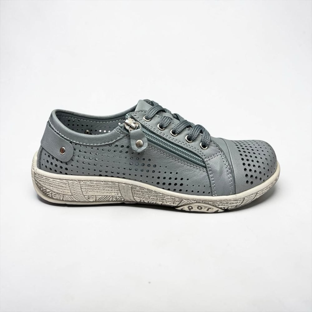 Leather upper. Leather lined. Comfort footbed. Rubber sole. Adjustable laces. Functional zipper. $155