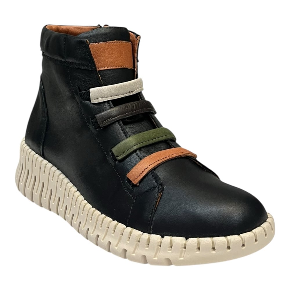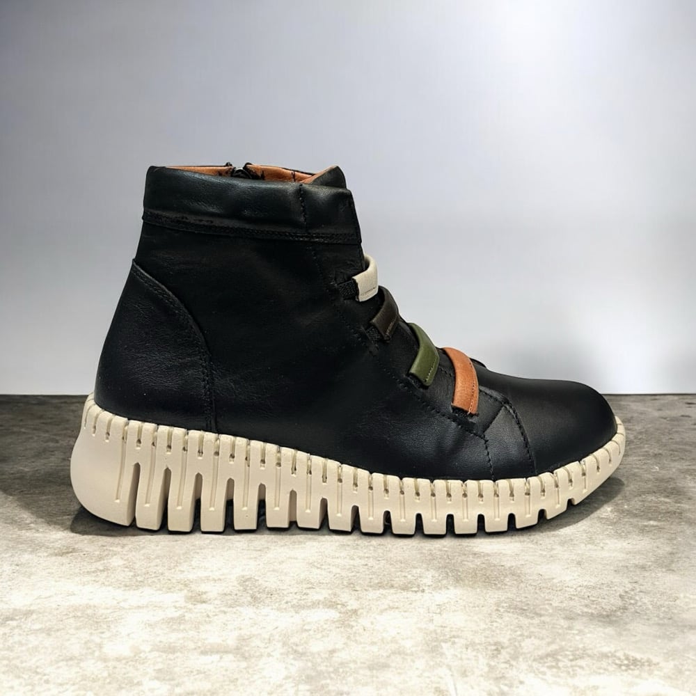 Leather upper. Leather lined. Inside zipper entry. PU outsole. Removable insole.