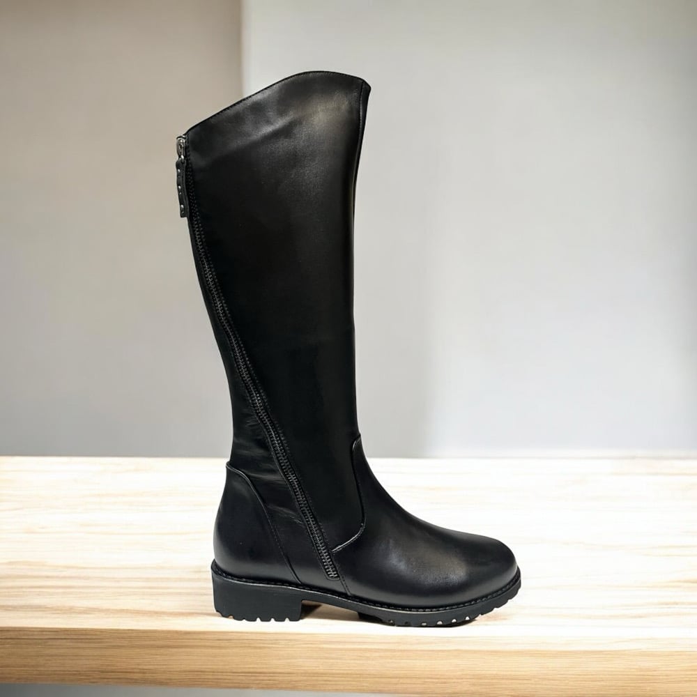 Soft Leather upper. Leather insole. Rubber unit sole. Removable insole. Inside zipper.