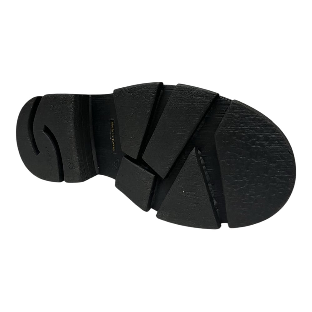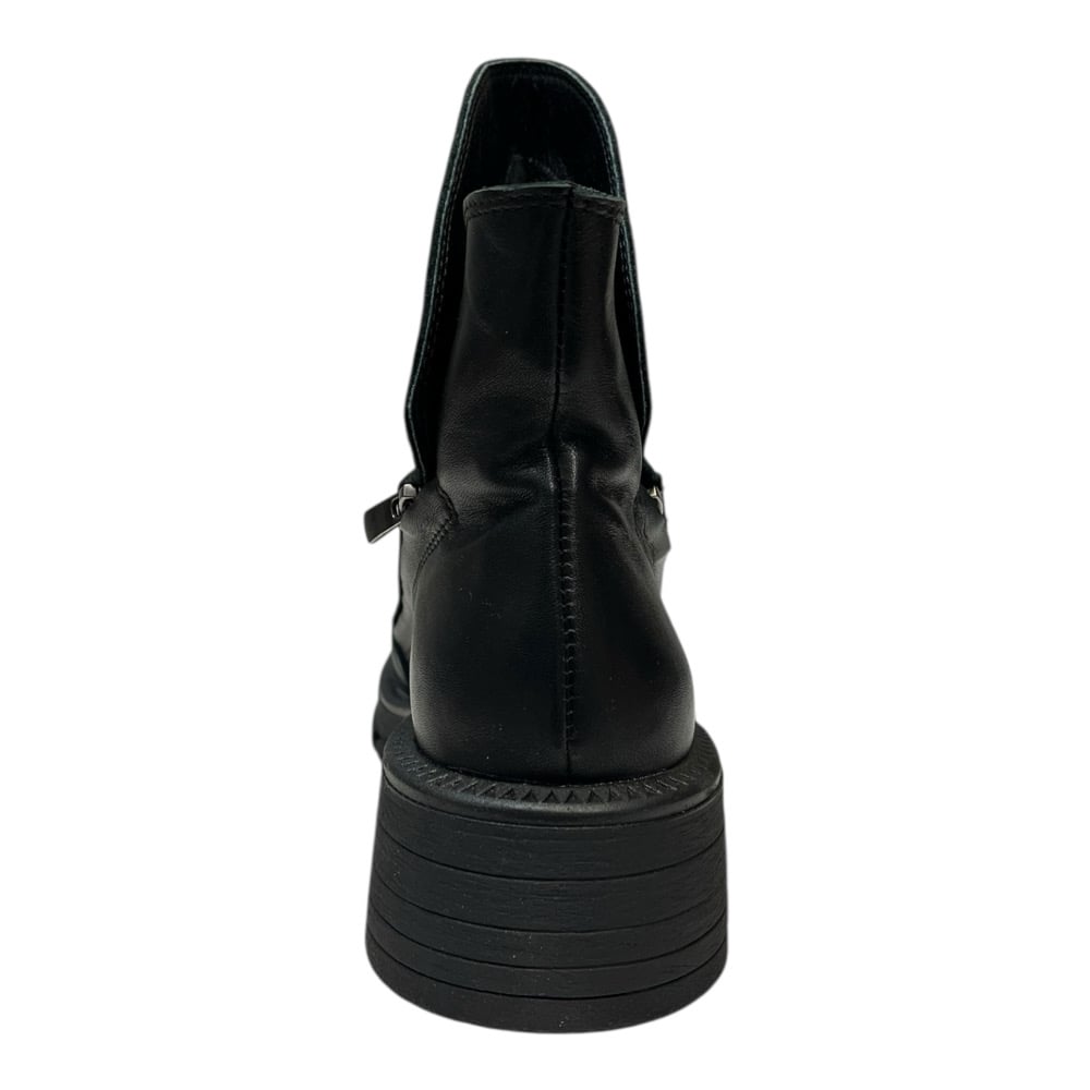 Soft Leather upper. Leather insole. Double entry zippers. Polyester lining. Rubber unit sole. Removable insole.