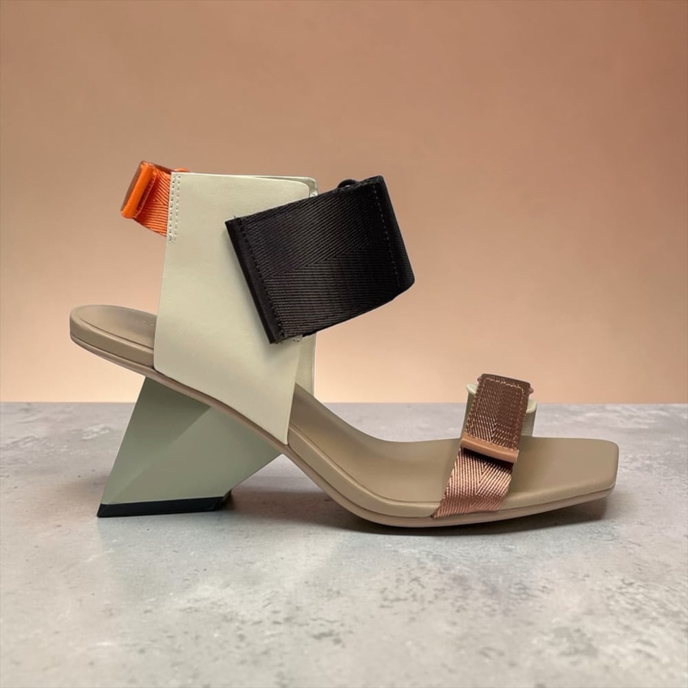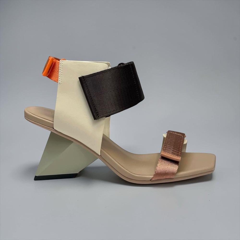 Leather/ textile upper. Leather lined. Adjustable straps. Rubber outsole. 2” heel height. $430